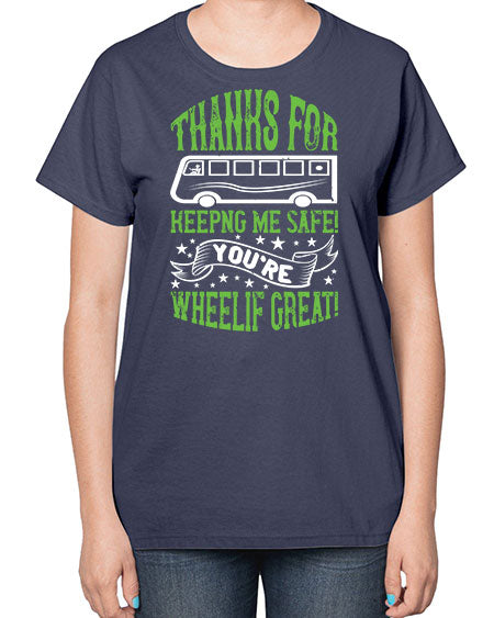 thanks for keepng me safe youre wheelif great Style 1493# - Bus Driver- Ladies T-Shirt