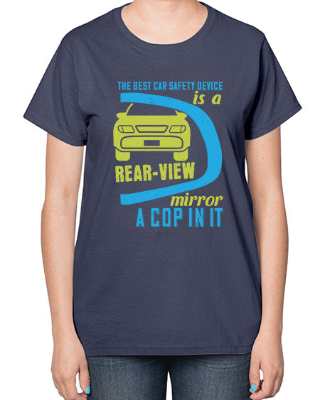The best car safety device is a rearview mirror with a cop in it 67# - car- Ladies T-Shirt
