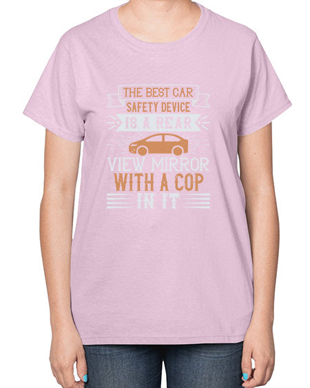 The best car safety device is a rearview mirror with a cop in it 78# - car- Ladies T-Shirt