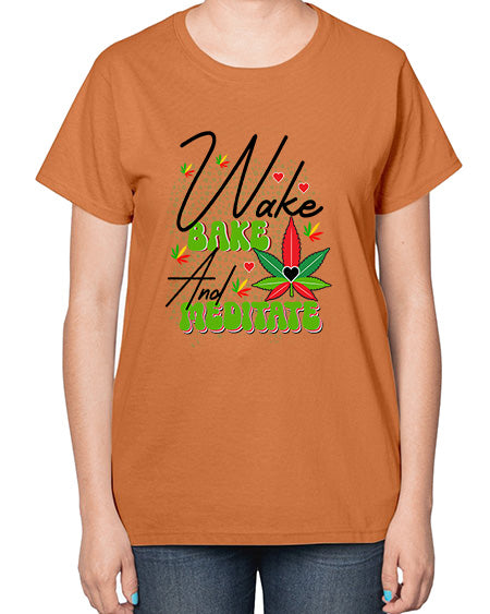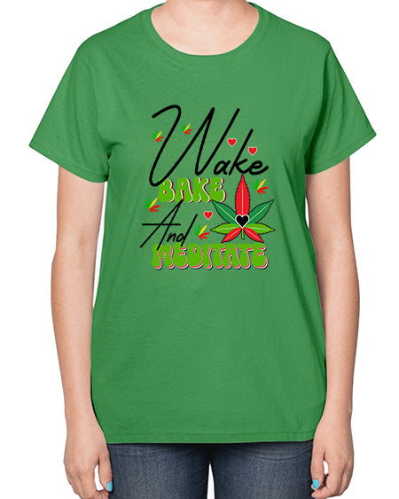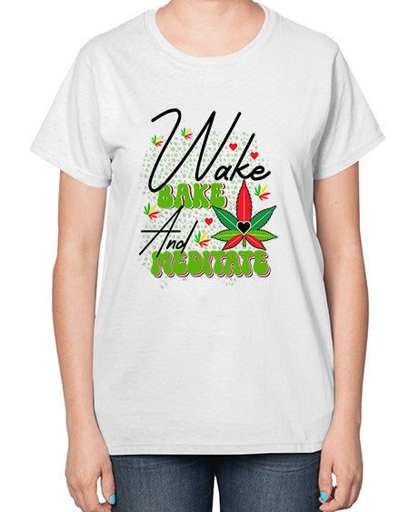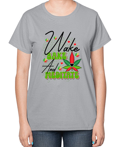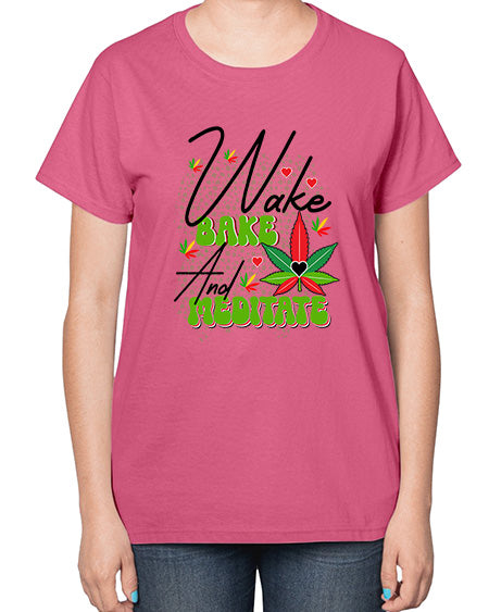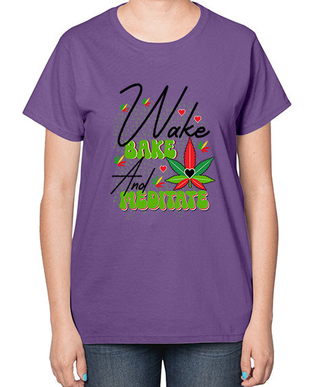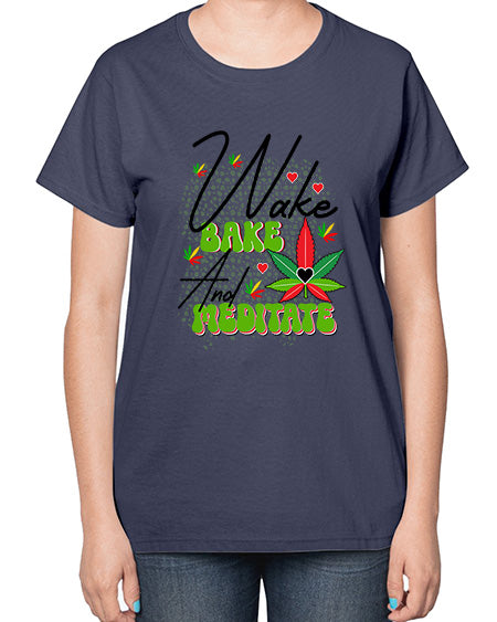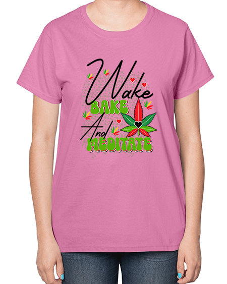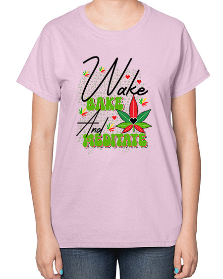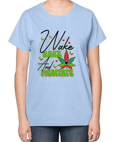 Wake Bake and Meditate 1201# - marijuana- Ladies T-Shirt