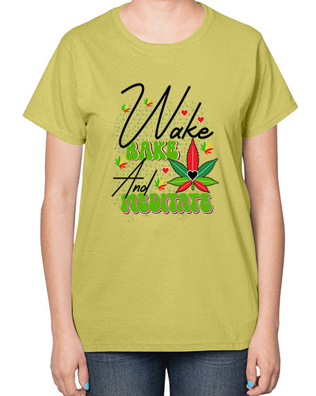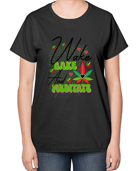 Wake Bake and Meditate 1201# - graphic- Ladies T-Shirt
