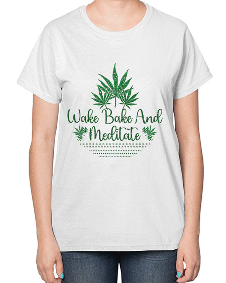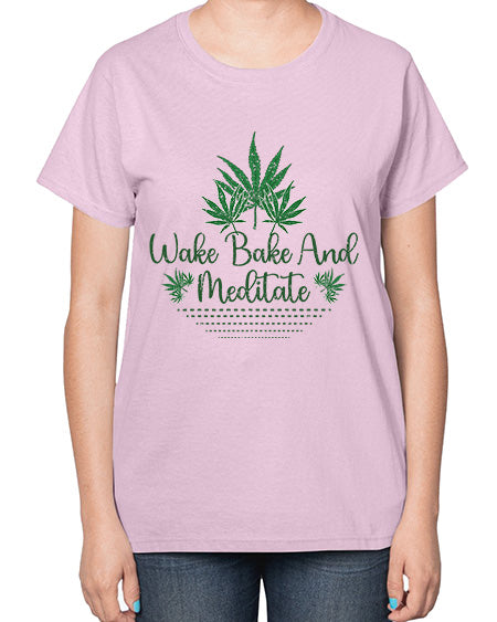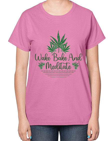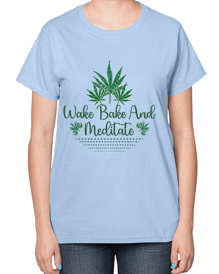 Wake Bake And Meditate Sublimation 1202# - marijuana- Ladies T-Shirt