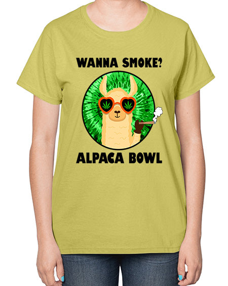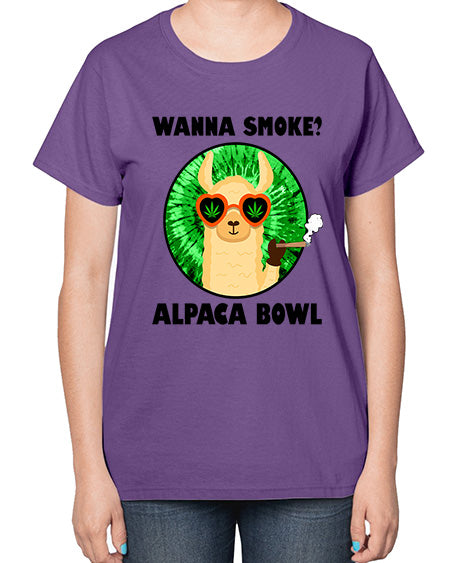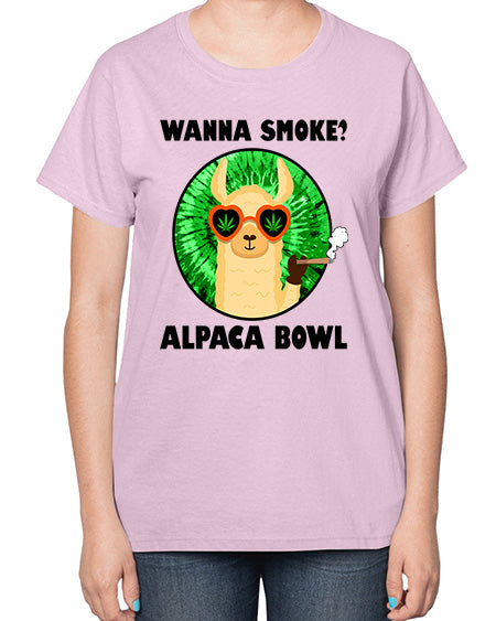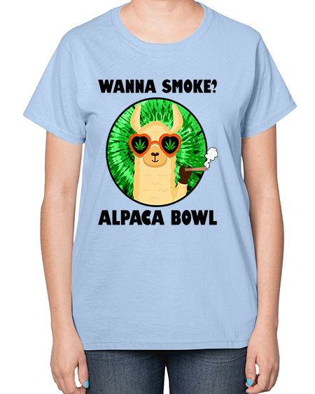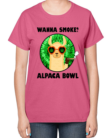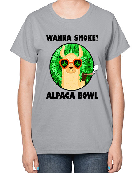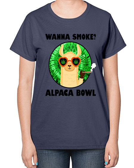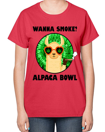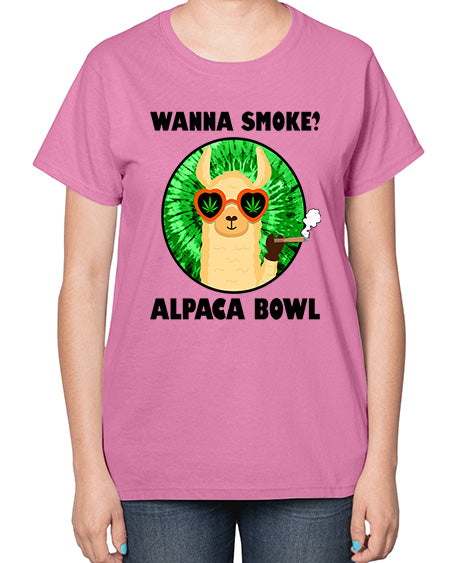 Wanna Smoke Alpaca Bowl 1203# - graphic- Ladies T-Shirt
