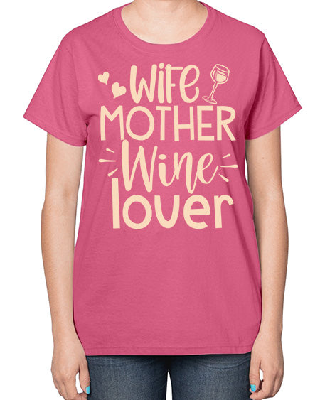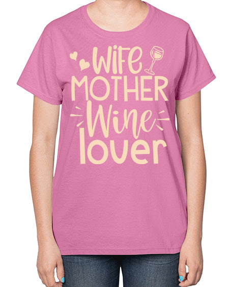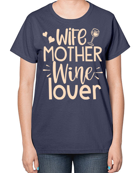 wife mother wine lover 1714# - wine- Ladies T-Shirt Contoured fit, machine washable, cotton blend - Preshrunk jersey knit