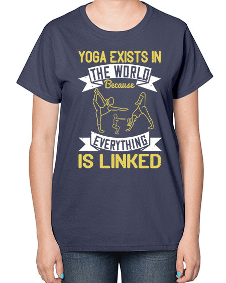 yoga exists in the world because everything is linked 617# - yoga- Ladies T-Shirt