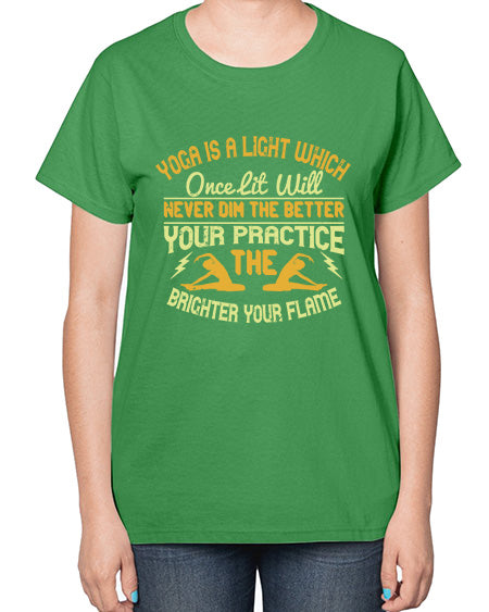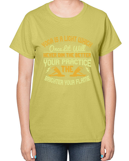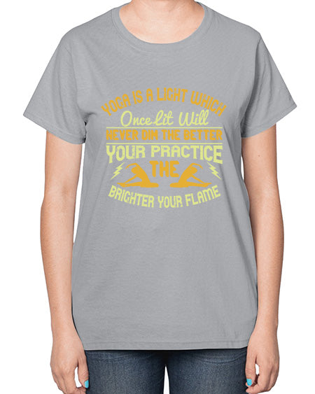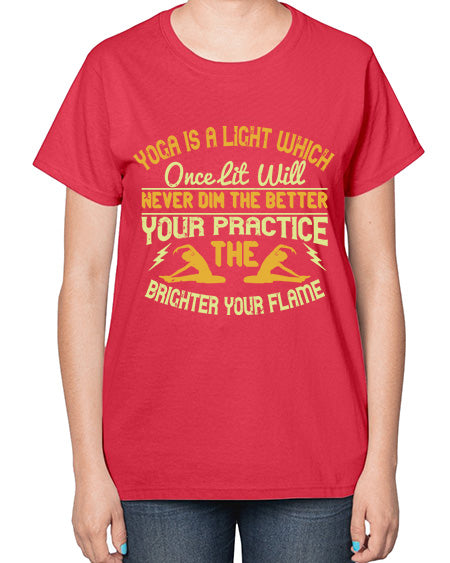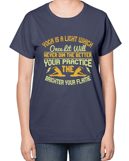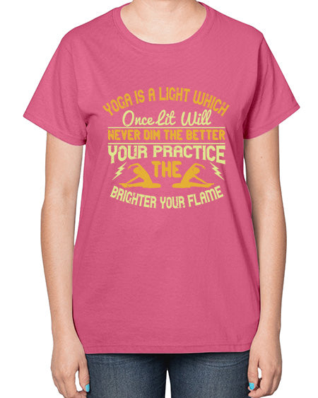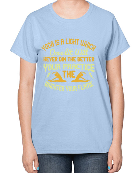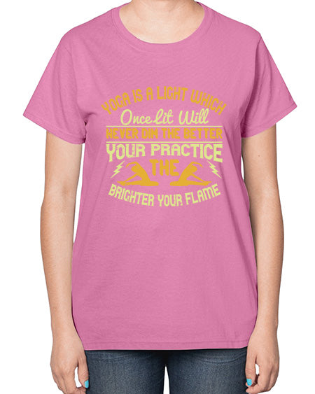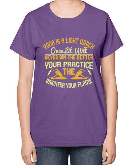 yoga is a light which once lit will never dim the better your practice the brighter your flame 620# - yoga- Ladies T-Shirt