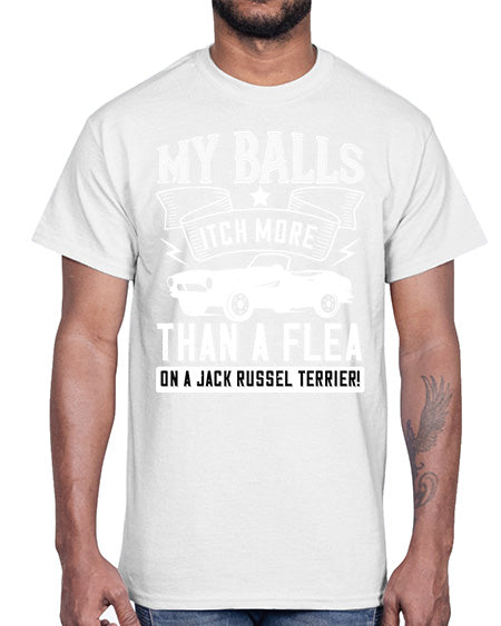 My balls itch more than a flea on a jack russel terrier 100#- hot rod- Cotton Tee