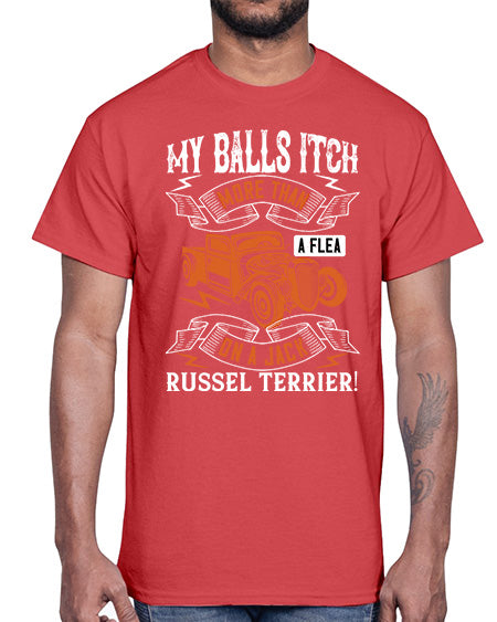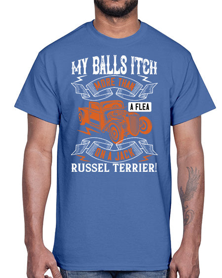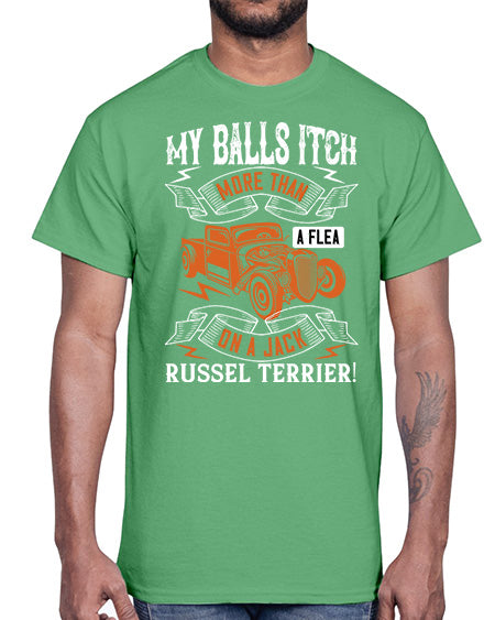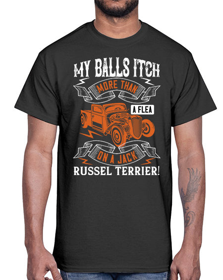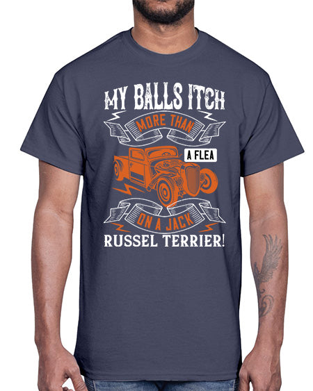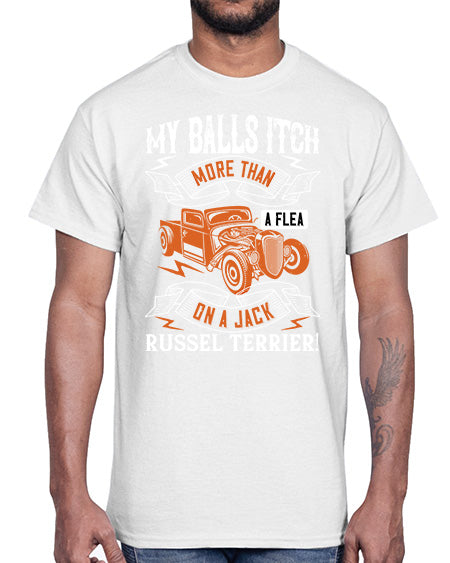 My balls itch more than a flea on a jack russel terrier 90#- hot rod- Cotton Tee