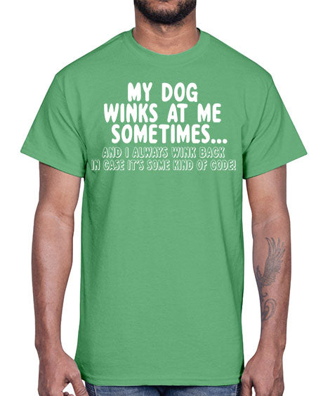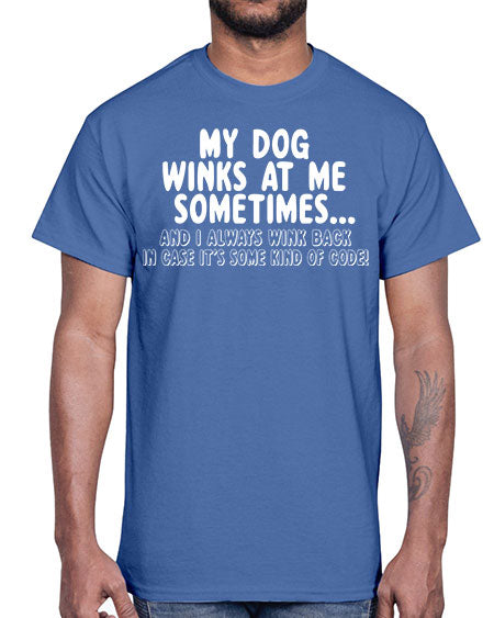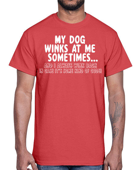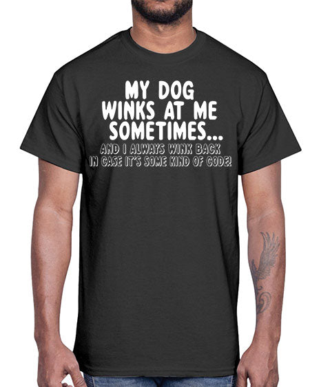 my dog winks at me sometimes and i wink back - dogs- Cotton Tee