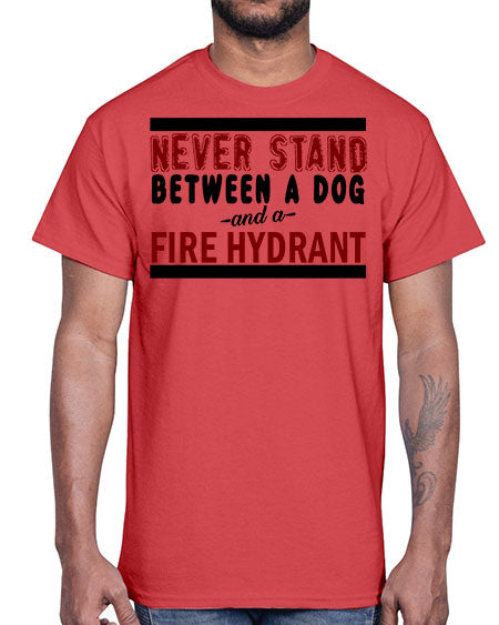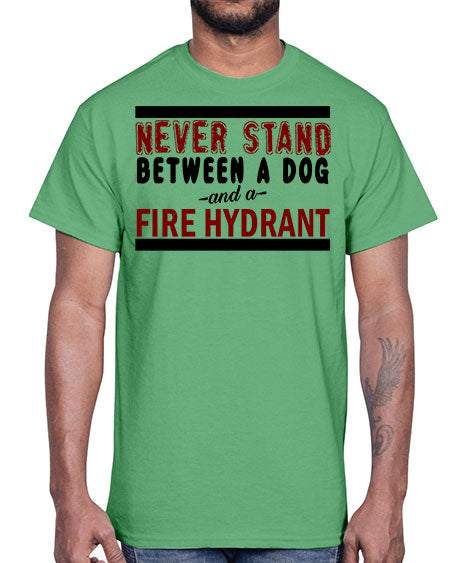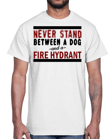 never stand between a dog and a fire hydrant- dogs- Cotton Tee