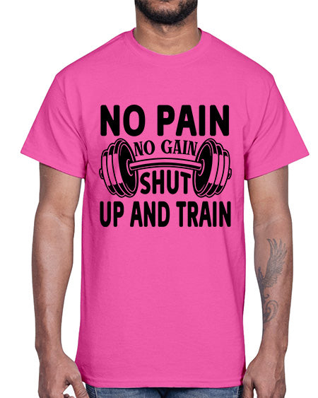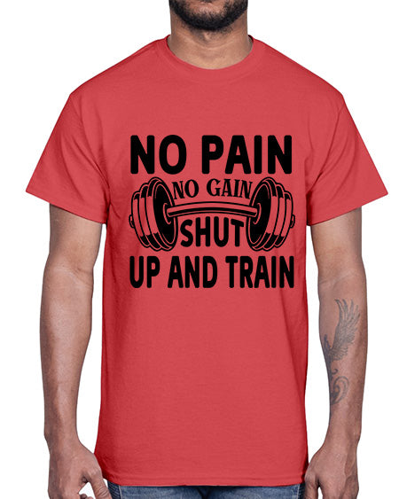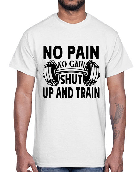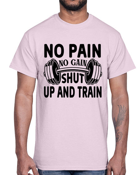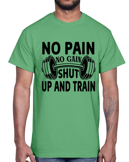 No Pain No Gain Shut Up and Train 476#- gym- Cotton Tee