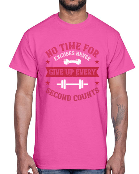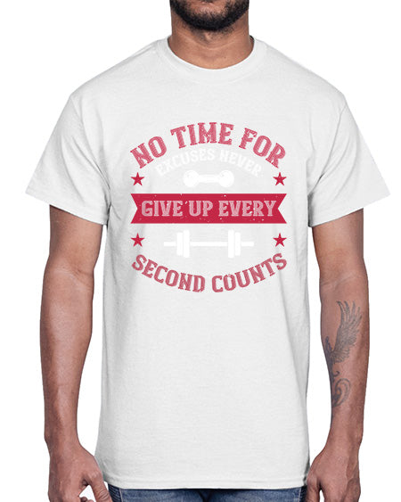 google-site-verification=jVrHOkW2AsgL_ozwUikqFQE6-Ke6U43Z8aLcUbXT5TE no time for excuses never give up every second 57#- gym- Cotton Tee – Tshirt Unlimited