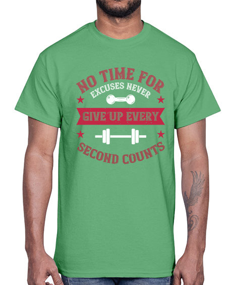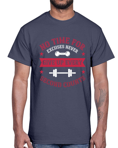 no time for excuses never give up every second 57#- gym- Cotton Tee