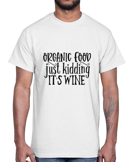 google-site-verification=jVrHOkW2AsgL_ozwUikqFQE6-Ke6U43Z8aLcUbXT5TE organic food just kidding its wine 1465#- wine- Cotton Tee – Tshirt Unlimited