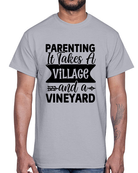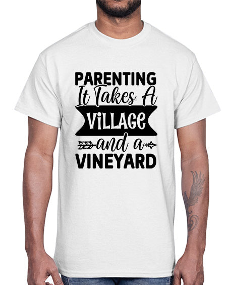 google-site-verification=jVrHOkW2AsgL_ozwUikqFQE6-Ke6U43Z8aLcUbXT5TE Parenting it takes a village and a vineyard 1470#- wine- Cotton Tee – Tshirt Unlimited