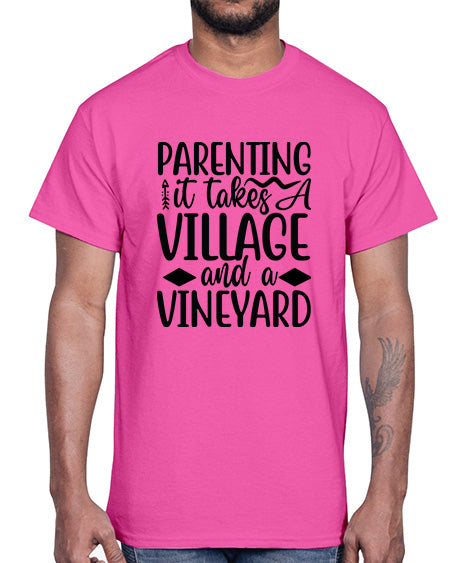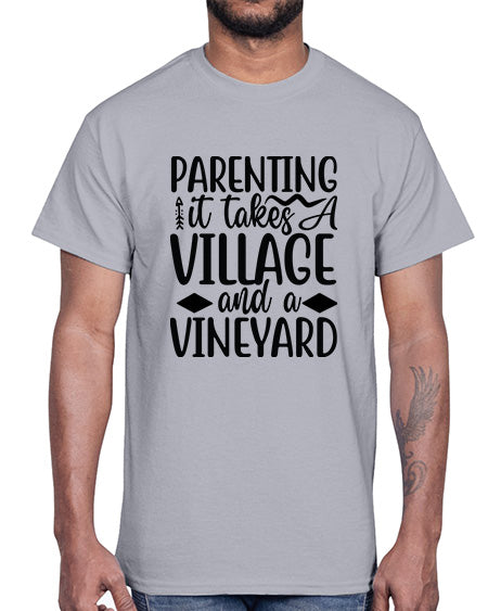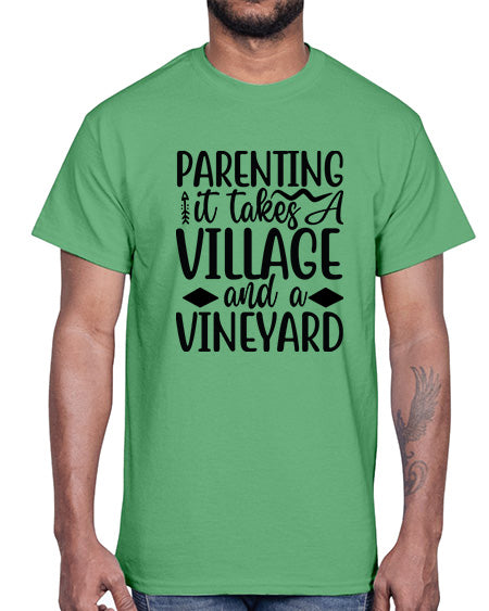Parenting It Takes A Village And A Vineyard 1472#- wine- Cotton Tee