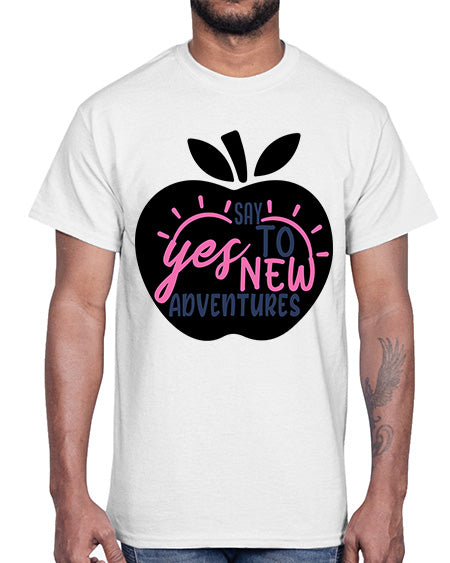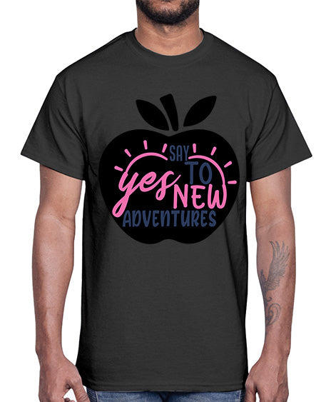 google-site-verification=jVrHOkW2AsgL_ozwUikqFQE6-Ke6U43Z8aLcUbXT5TE say yes to new adventures Style 75#- motivation- Cotton Tee – Tshirt Unlimited
