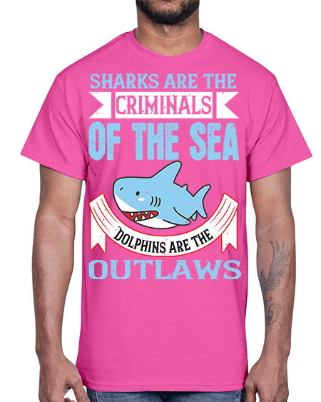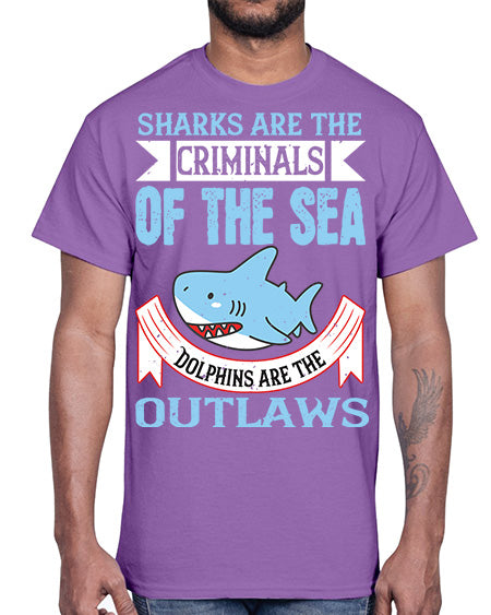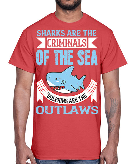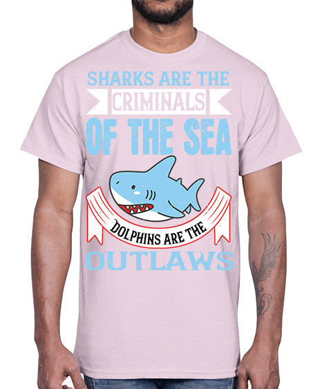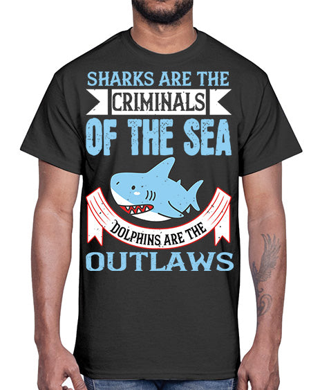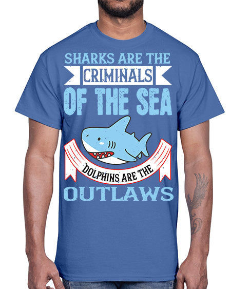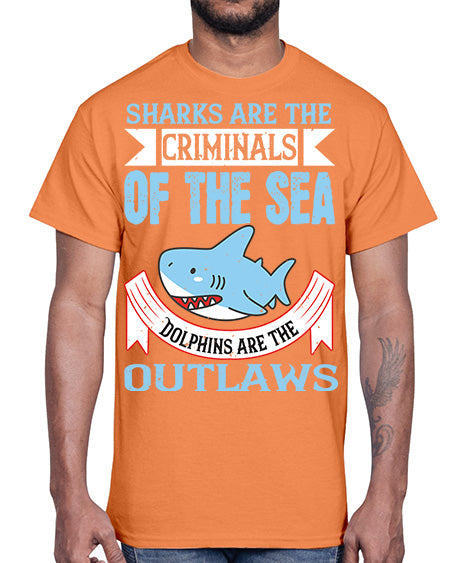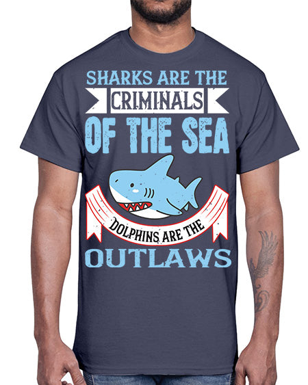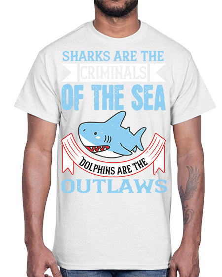 Sharks are the criminals of the sea Dolphins are the outlaws Style 32#- shark-fish- Cotton Tee