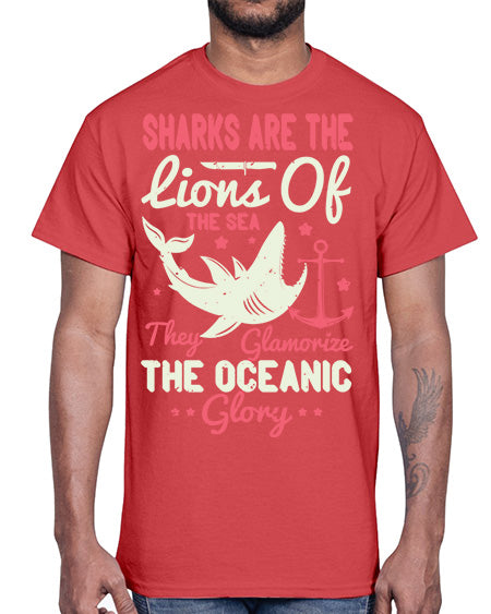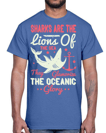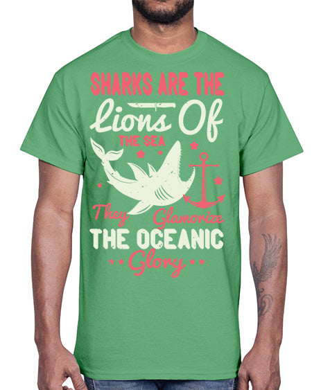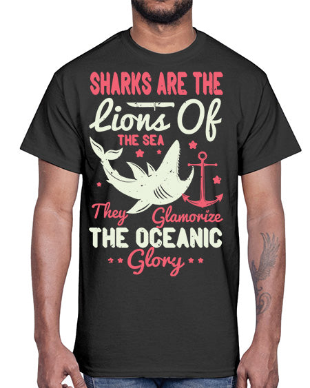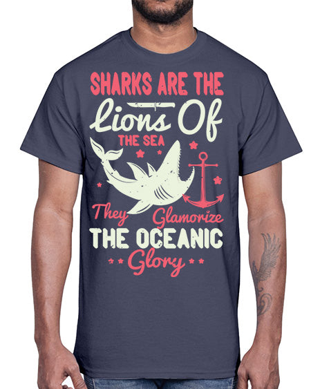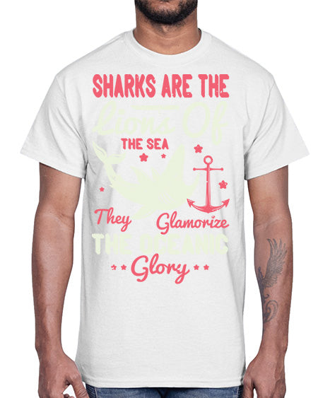 Sharks are the lions of the seaThey glamorize the oceanic glory Style 28#- shark-fish- Cotton Tee
