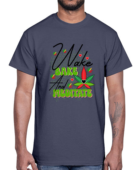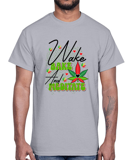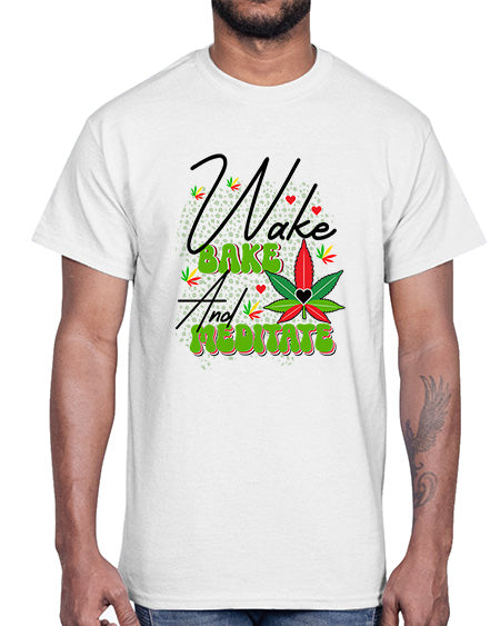 google-site-verification=jVrHOkW2AsgL_ozwUikqFQE6-Ke6U43Z8aLcUbXT5TE Wake Bake and Meditate 1201#- marijuana- Cotton Tee – Tshirt Unlimited