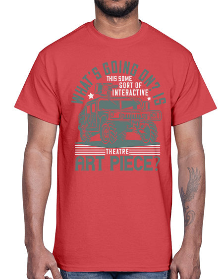 Whats going on Is this some sort of interactive theatre art piece 23#- hot rod- Cotton Tee
