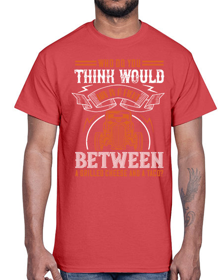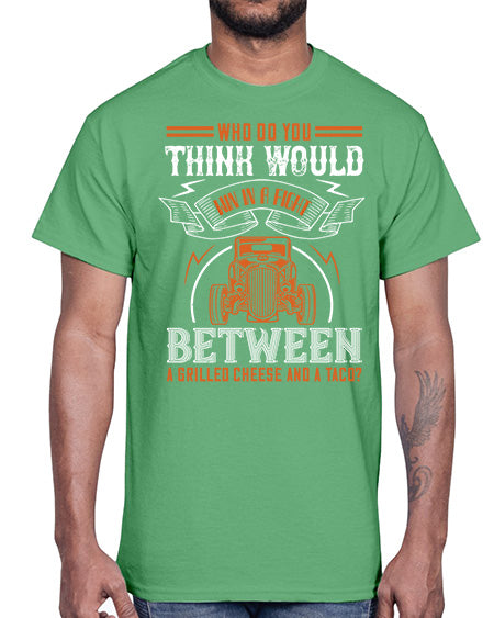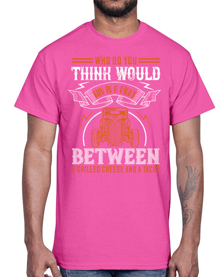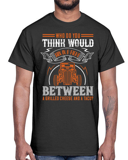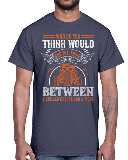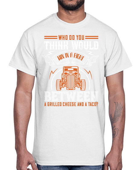 Who do you think would win in a fight between a grilled cheese and a taco 78#- hot rod- Cotton Tee