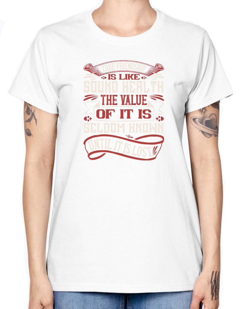 google-site-verification=jVrHOkW2AsgL_ozwUikqFQE6-Ke6U43Z8aLcUbXT5TE True friendship is like sound health the value of it is seldom known u – Tshirt Unlimited