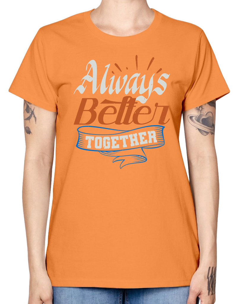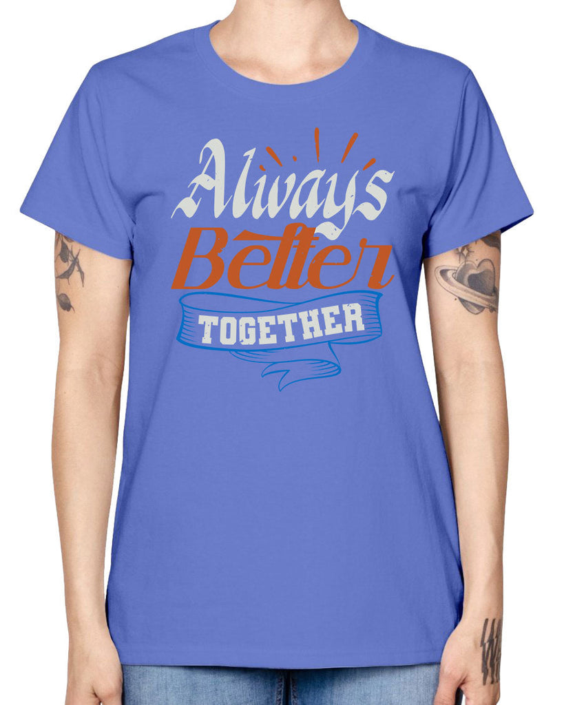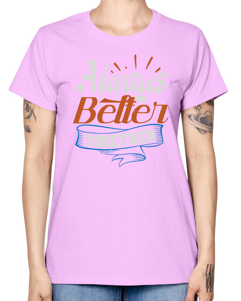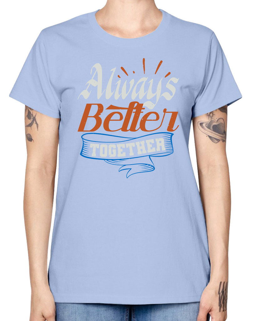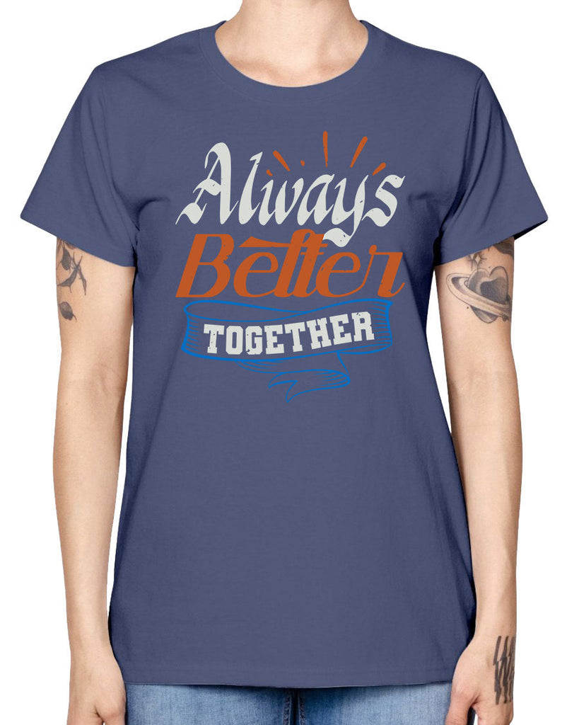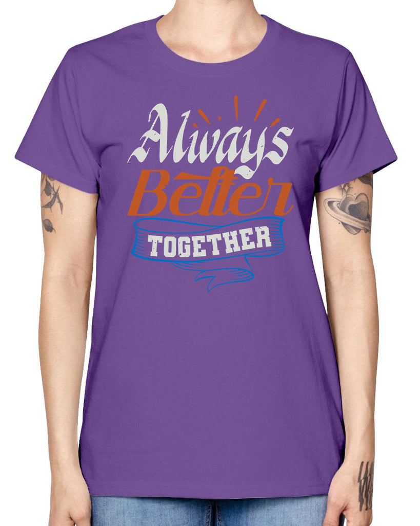- Blackberry, Dark Heather, Heather Sapphire, Lilac, Sunset 50/50 cotton/poly