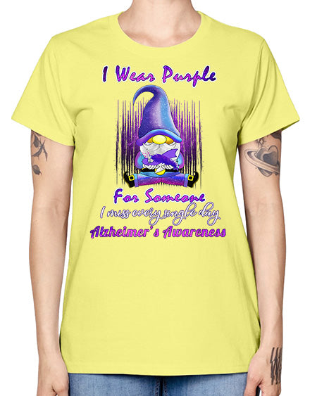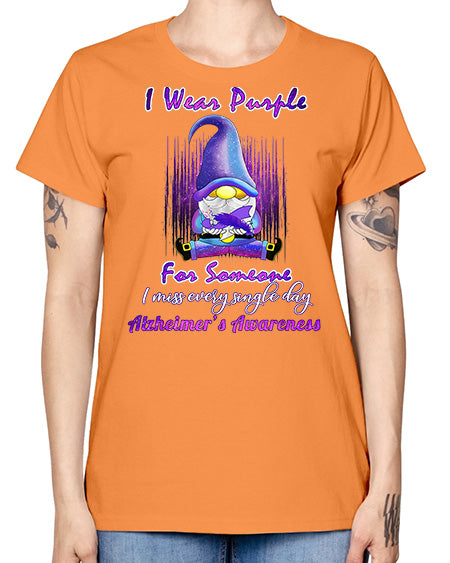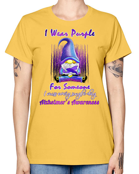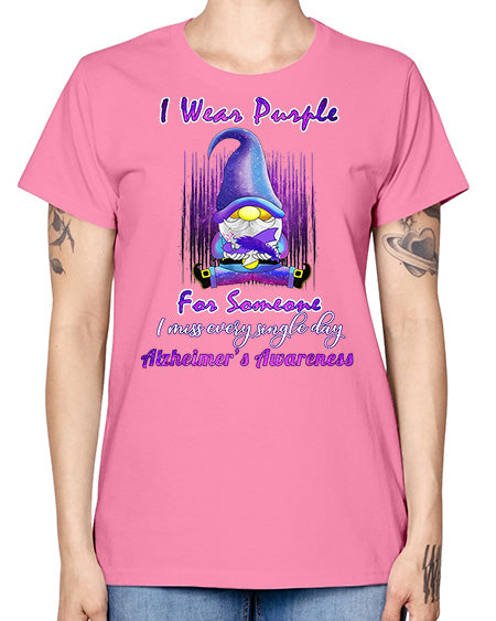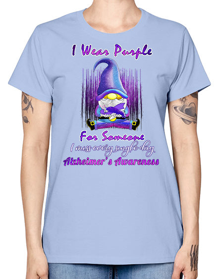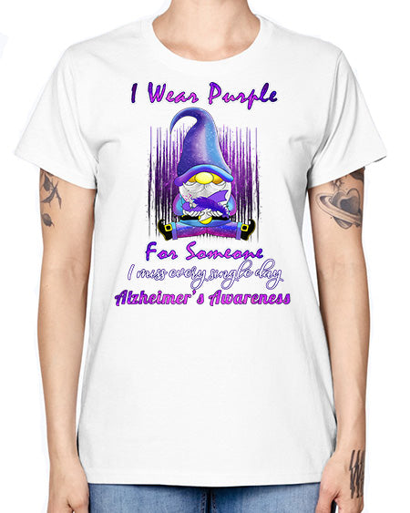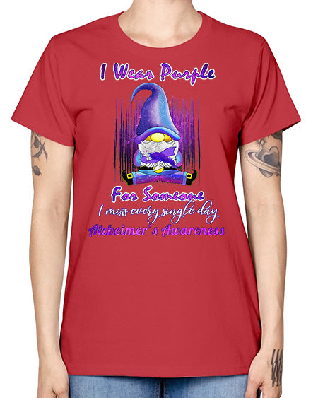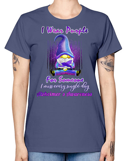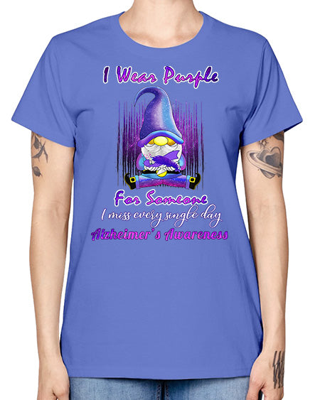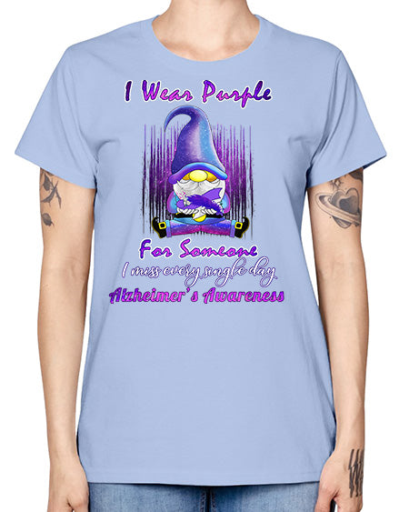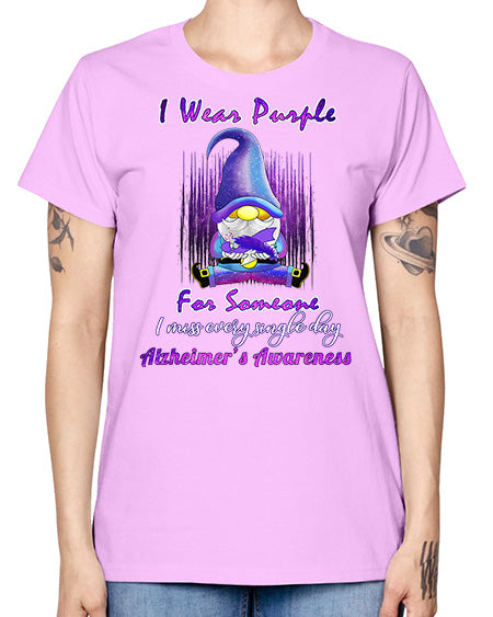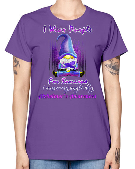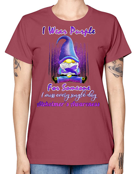 Alzheimers Awareness Products I Wear Purple Ribbon Gnome 22# - alzheimers - Missy T-Shirt