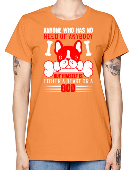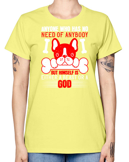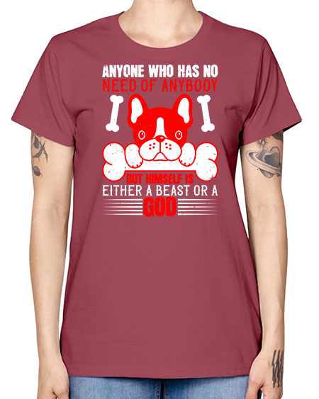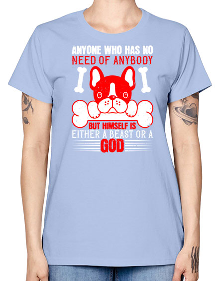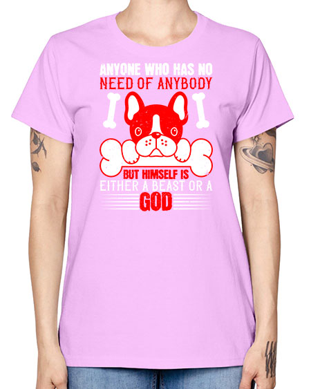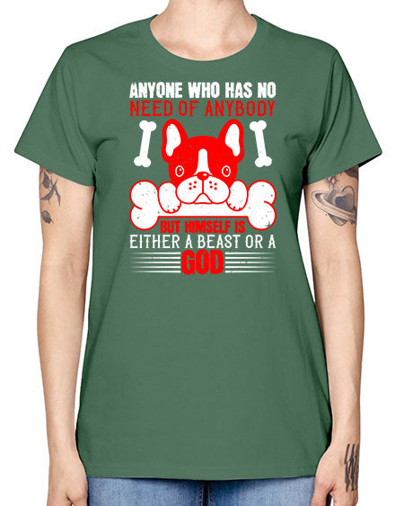 Anyone who has no need of anybody but himself is either a beast or a God Style 132# - dogs - Missy T-Shirt