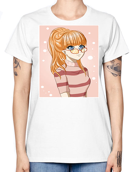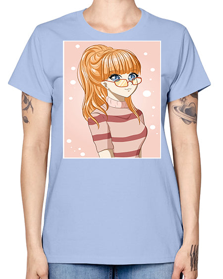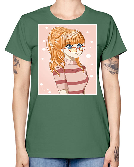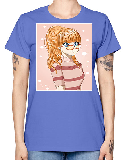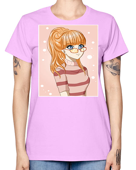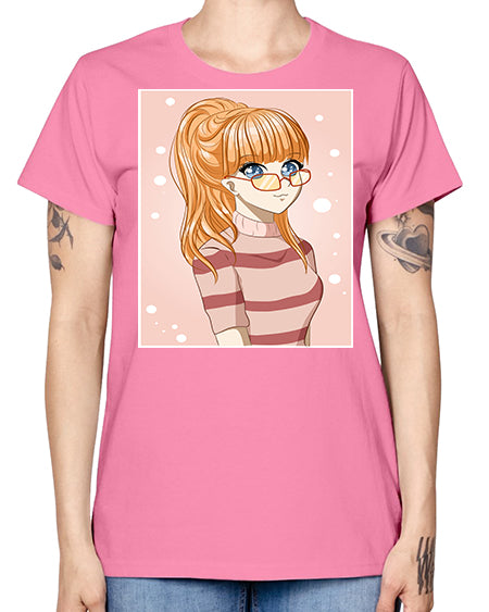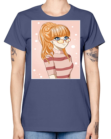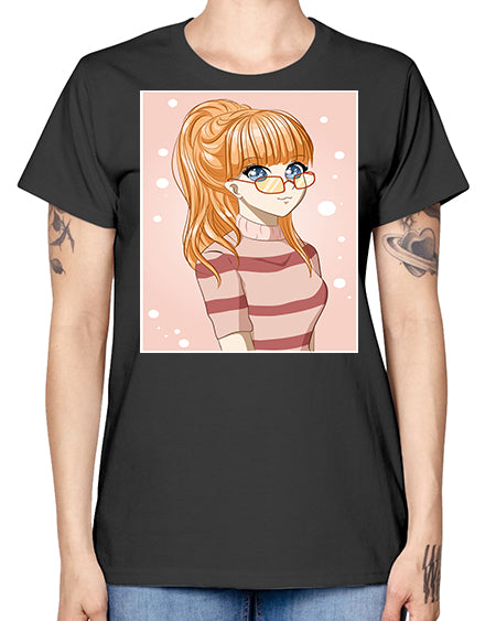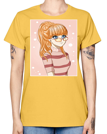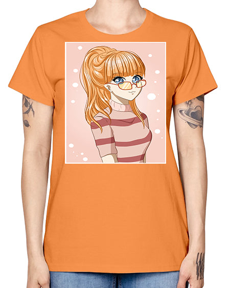 Beautiful and cool girl orange hair with glasses 105# - anime - Missy T-Shirt