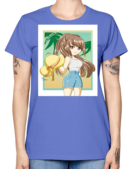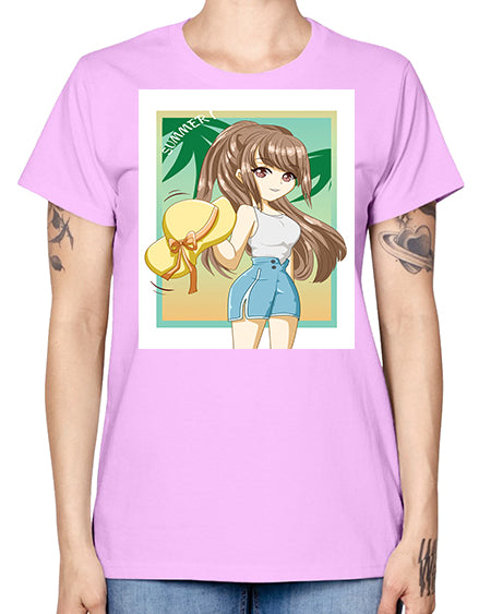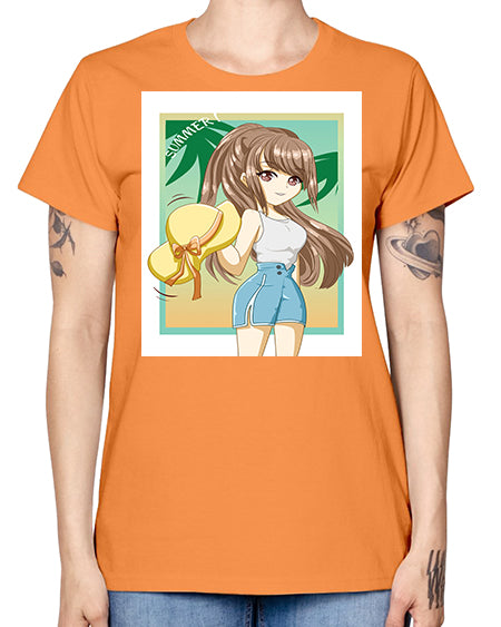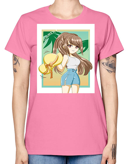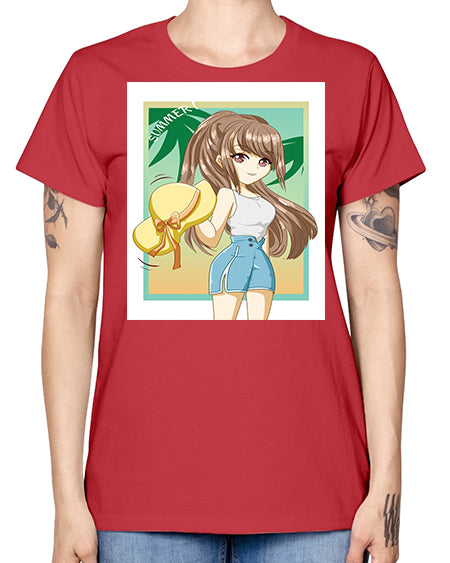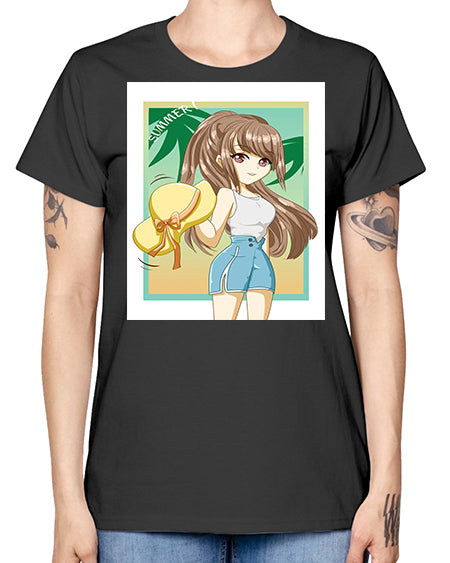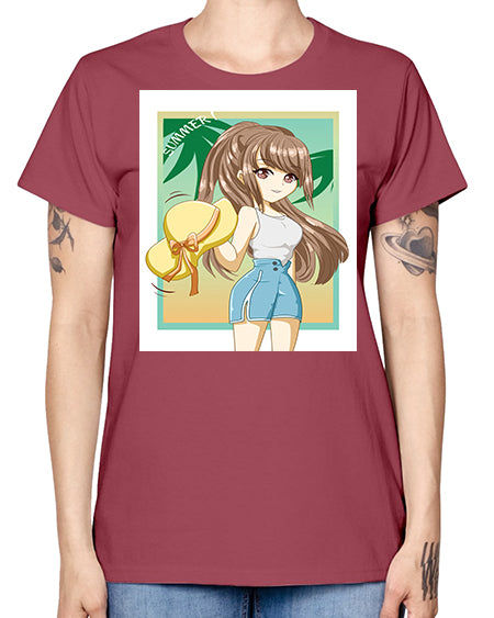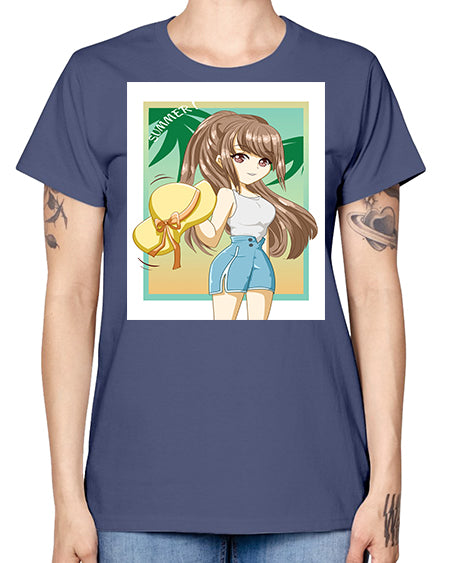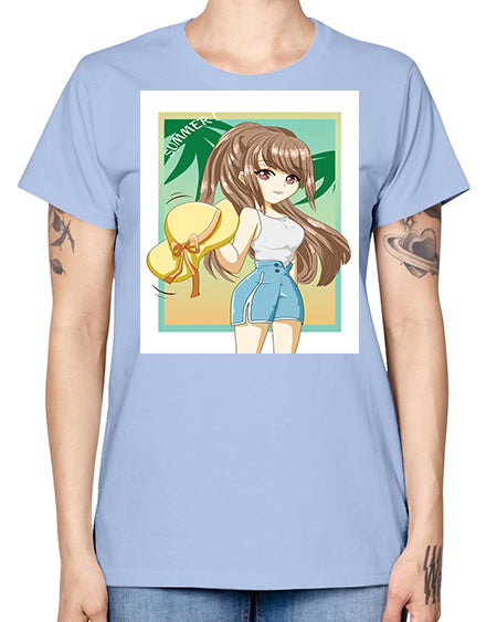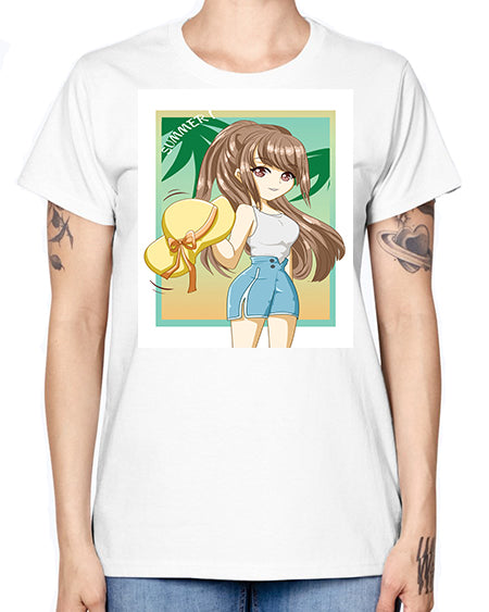 Beautiful and cute girl with hat on the beach in the summer 154# - anime - Missy T-Shirt