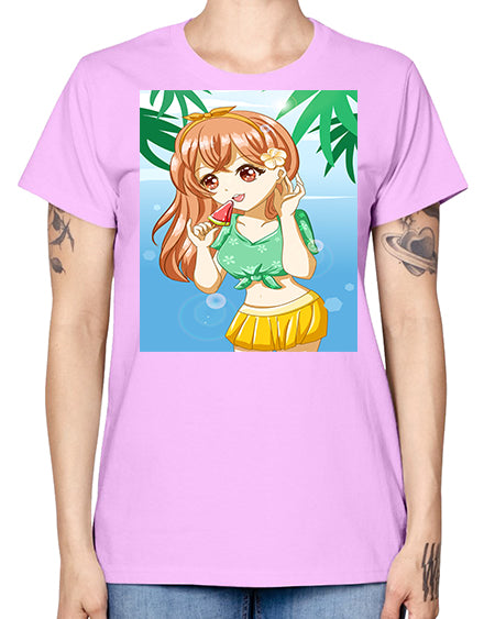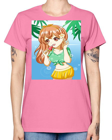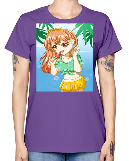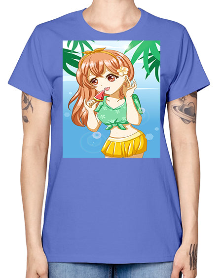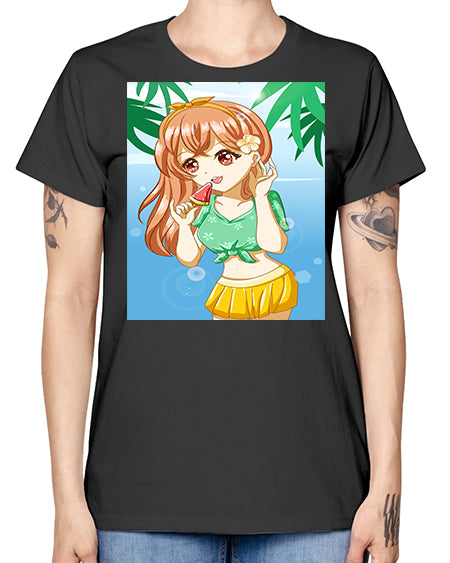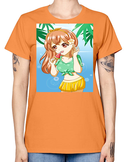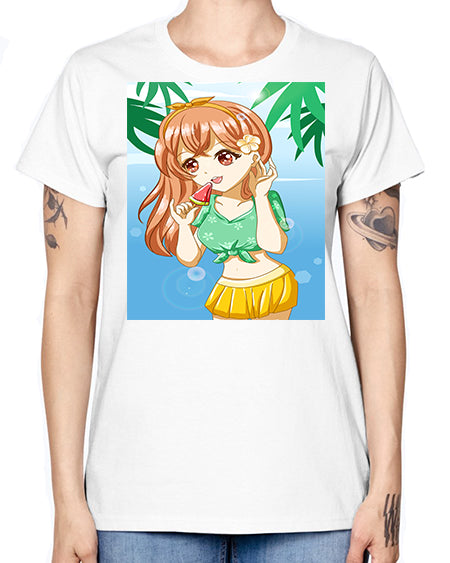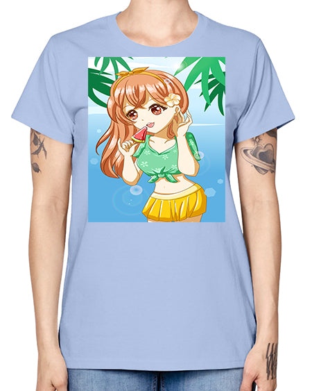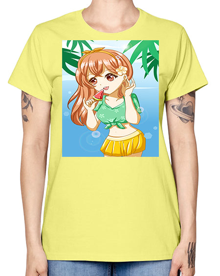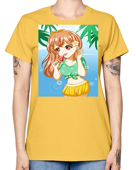 Beautiful and cute girl yellow hair with ice cream in beach in the summer 178# - anime - Missy T-Shirt