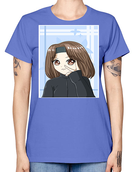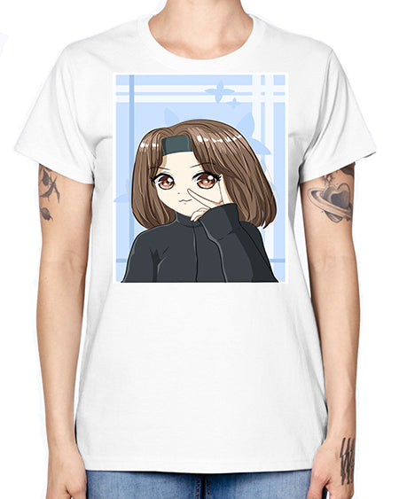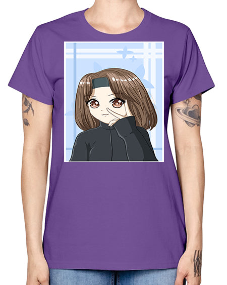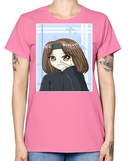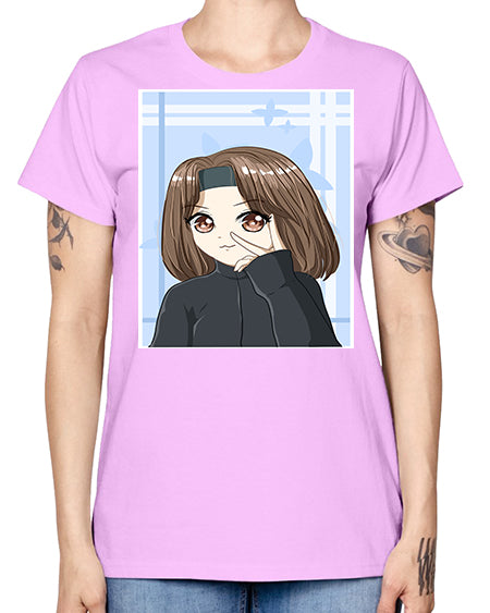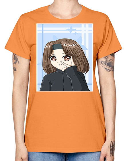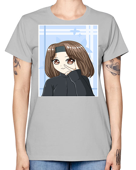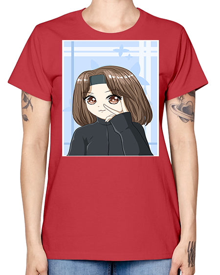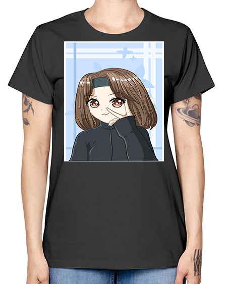 Beautiful and happy girl brown short hair with black jacket 89# - anime - Missy T-Shirt