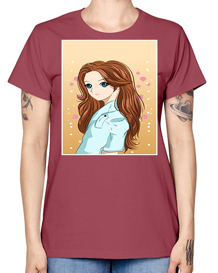 Beautiful and pretty girl brown long hair 123# - anime - Missy T-Shirt