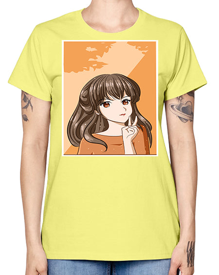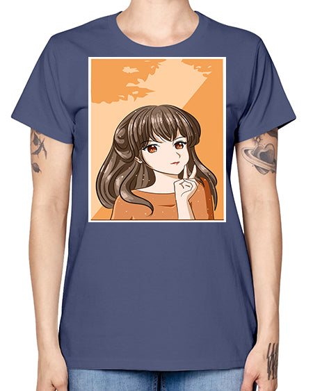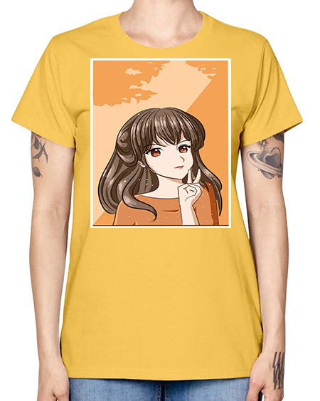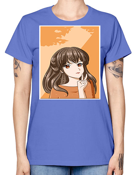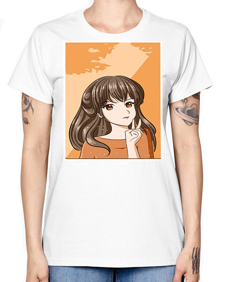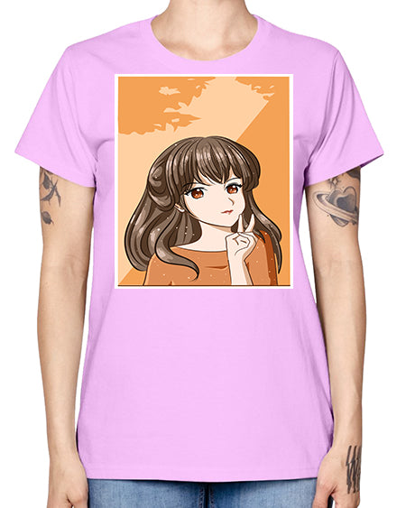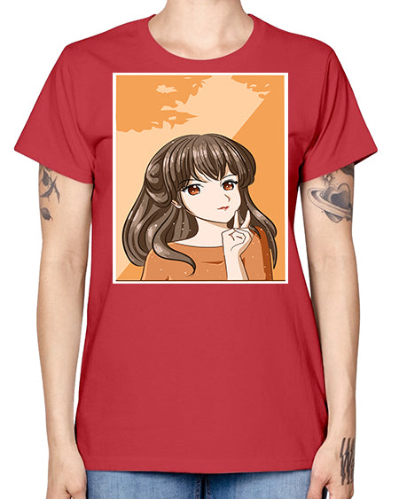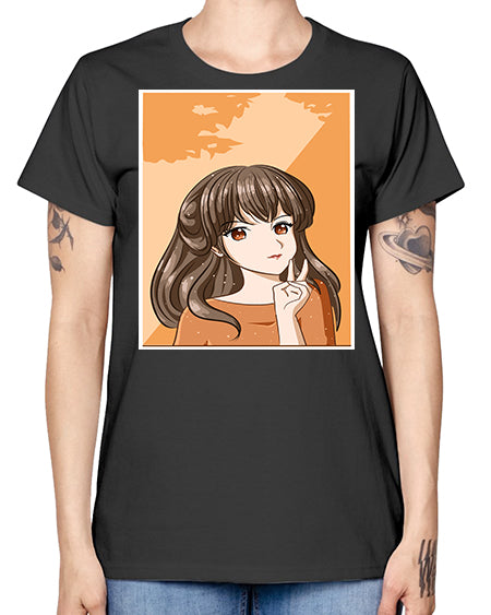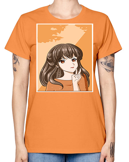 Beautiful and pretty girl long hair with orange background 100# - anime - Missy T-Shirt
