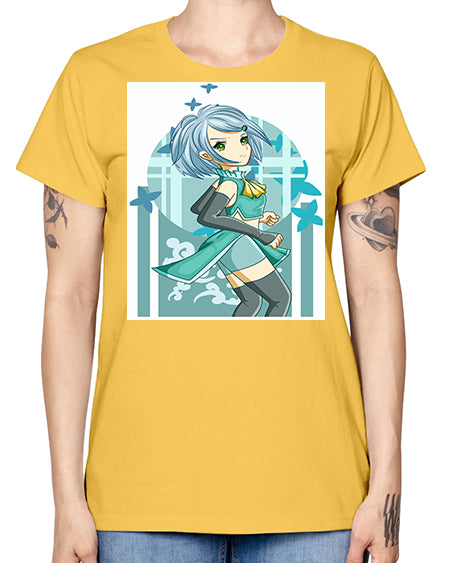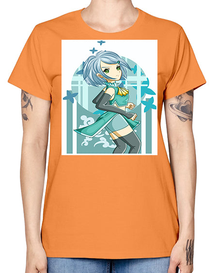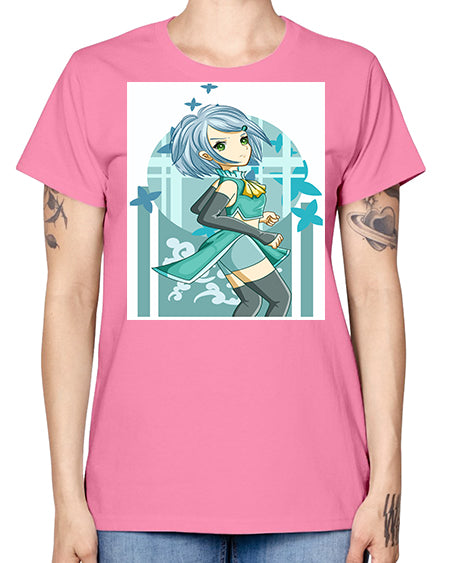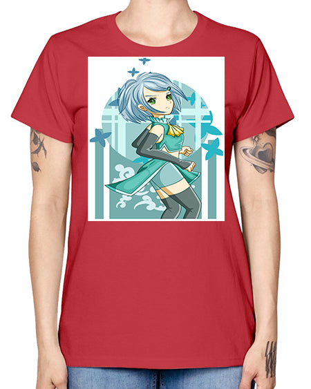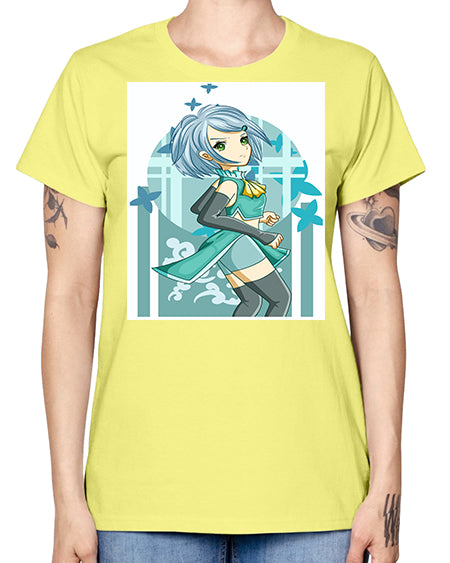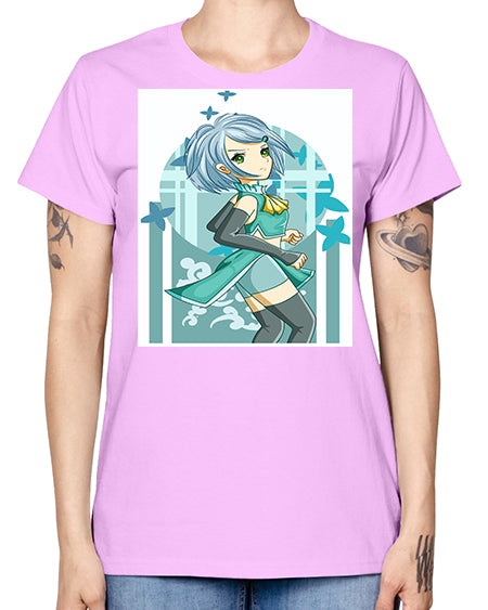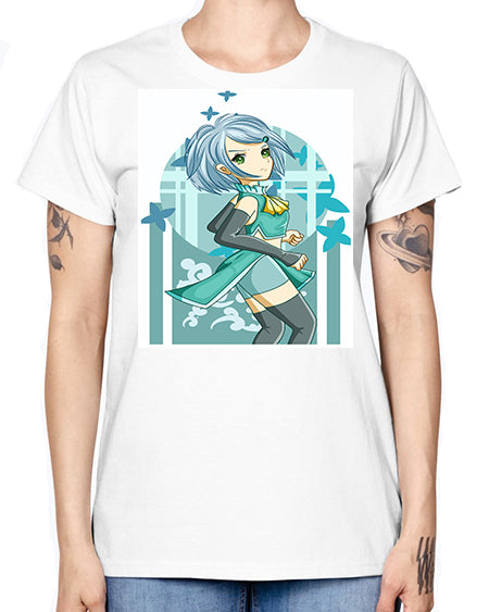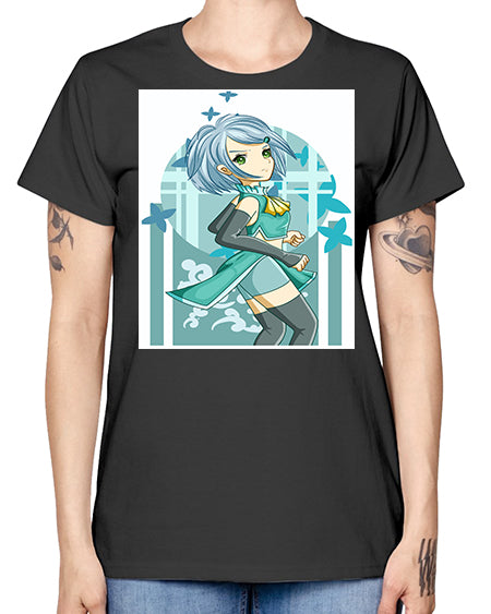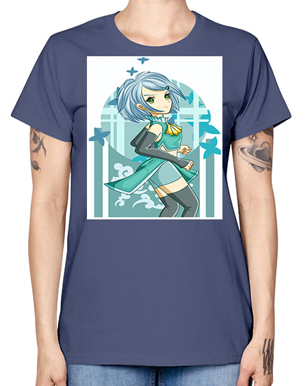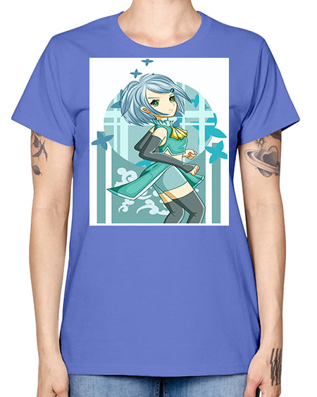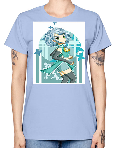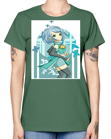 Beautiful girl blue hair with green clothes 161# - anime - Missy T-Shirt
