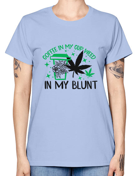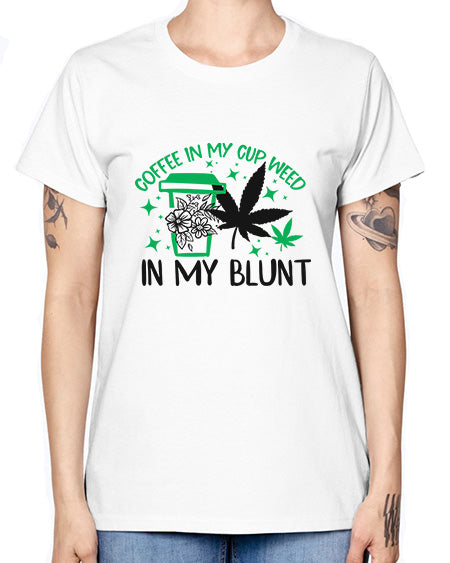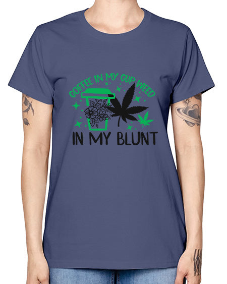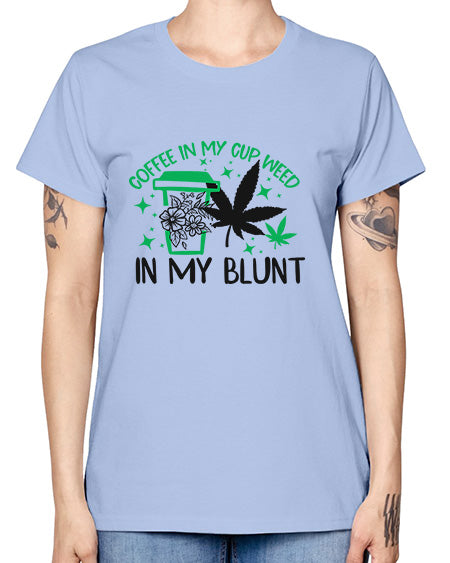 google-site-verification=jVrHOkW2AsgL_ozwUikqFQE6-Ke6U43Z8aLcUbXT5TE Coffee In my Cup Weed in my Blunt 336# - marijuana - Missy T-Shirt – Tshirt Unlimited