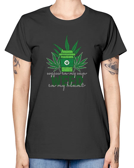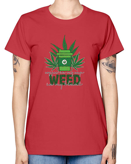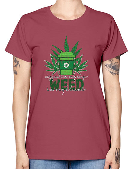 Coffee In My Cup Weed In My Blunt Sublimation 338# - marijuana - Missy T-Shirt