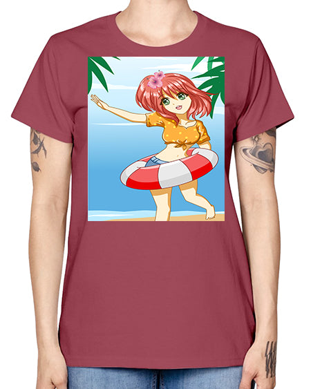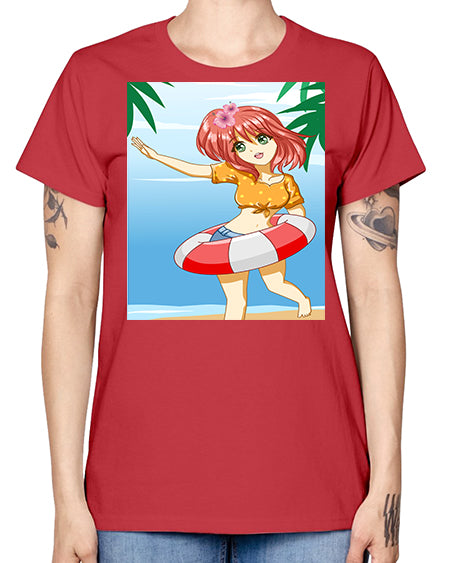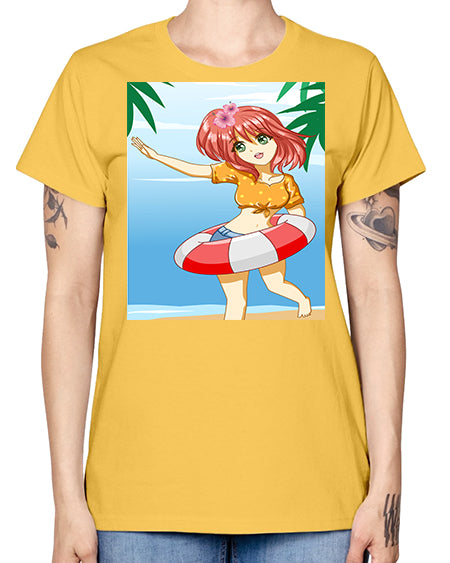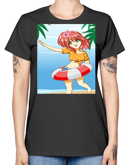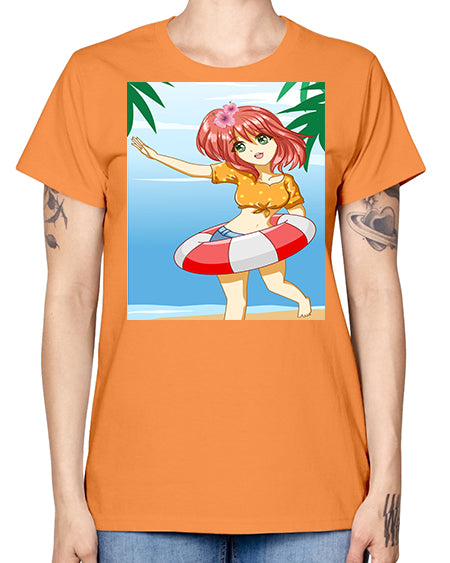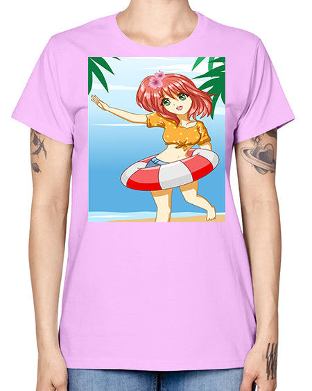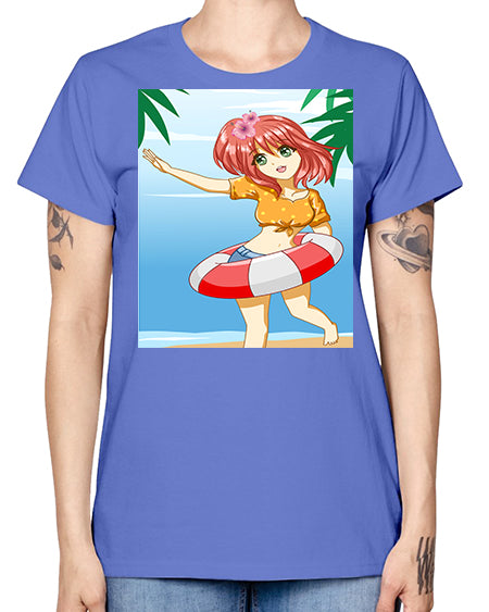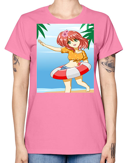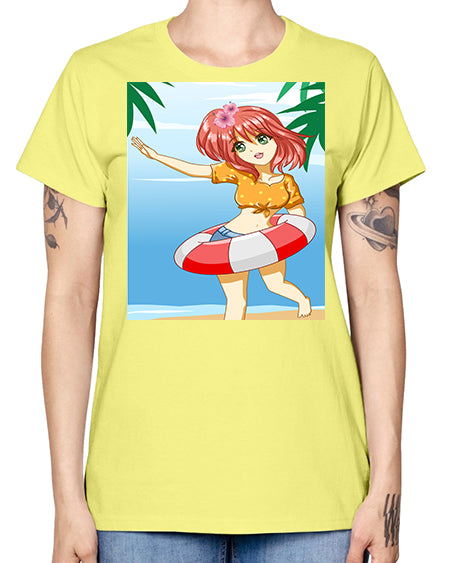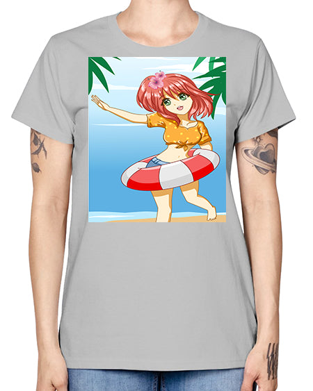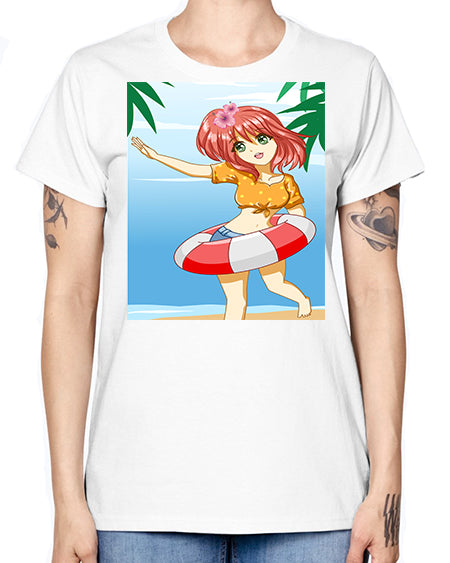 Cute and happy girl in beach with buoy in the summer 184# - anime - Missy T-Shirt