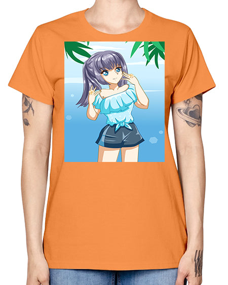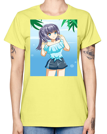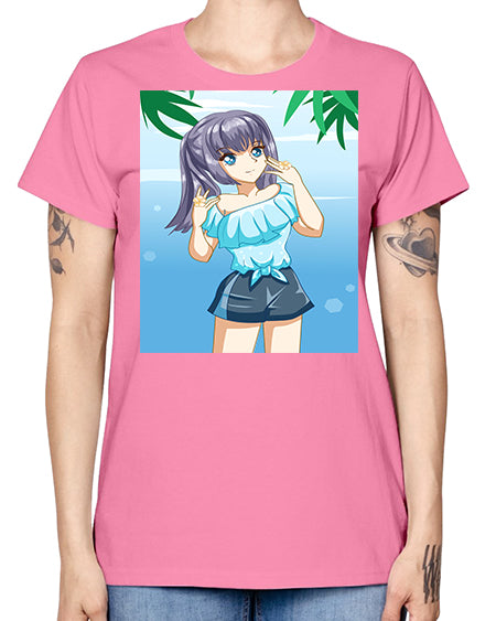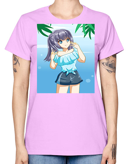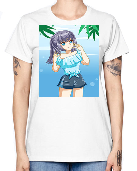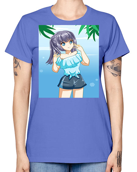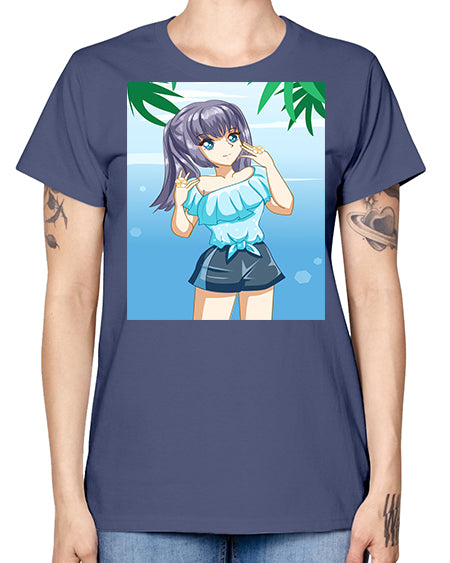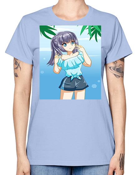 google-site-verification=jVrHOkW2AsgL_ozwUikqFQE6-Ke6U43Z8aLcUbXT5TE Cute and happy girl with blue shirt in summer 125# - anime - Missy T-S – Tshirt Unlimited