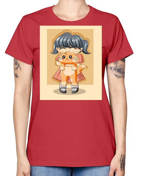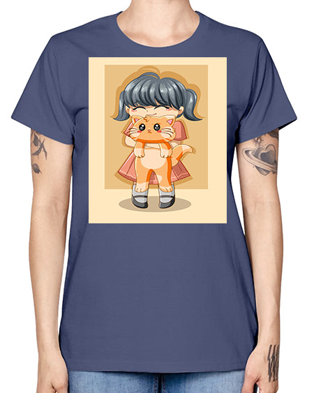Cute girl with cat animal day 135# - anime - Missy T-Shirt