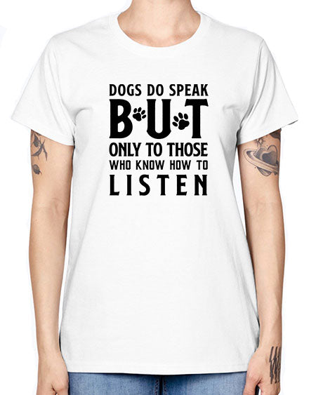 dogs do speak but only to those who know how to listen 131# - dogs- Missy T-Shirt - 100% preshrunk cotton