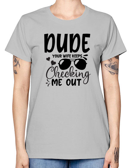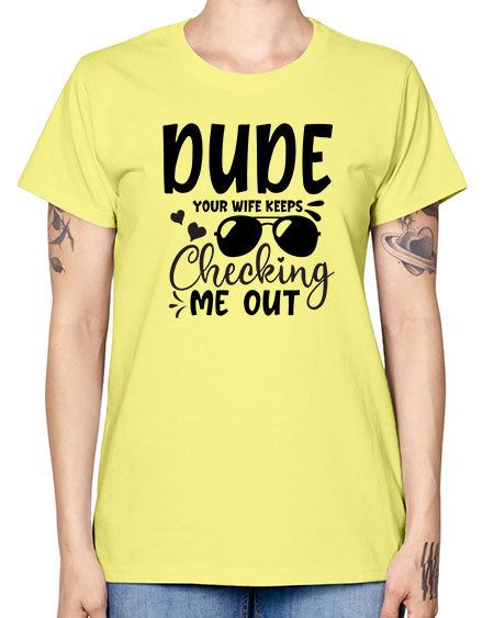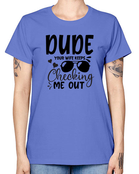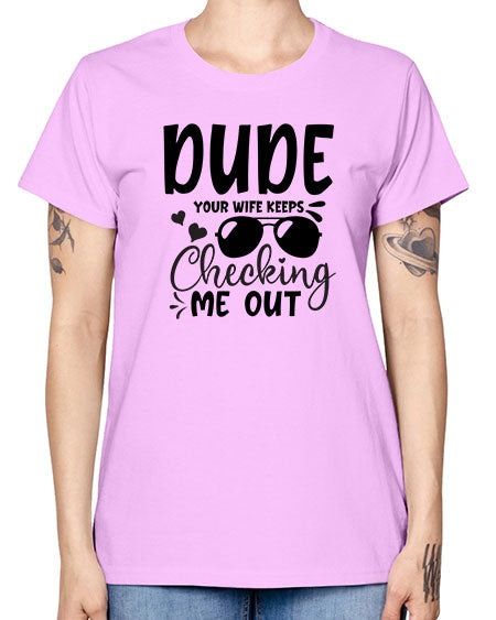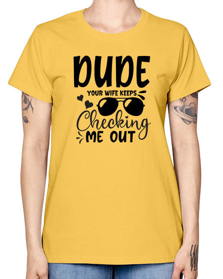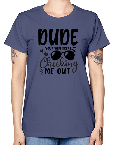 dude your wife keeps cheeking me out Style 72# - baby - Missy T-Shirt
