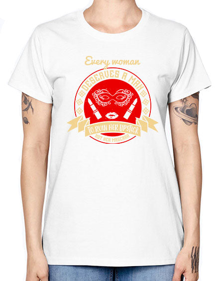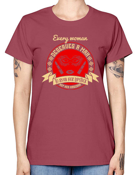 Every woman deserves a man to ruin her lipstick not her mascara Style 212# - beauty - fashion - Missy T-Shirt