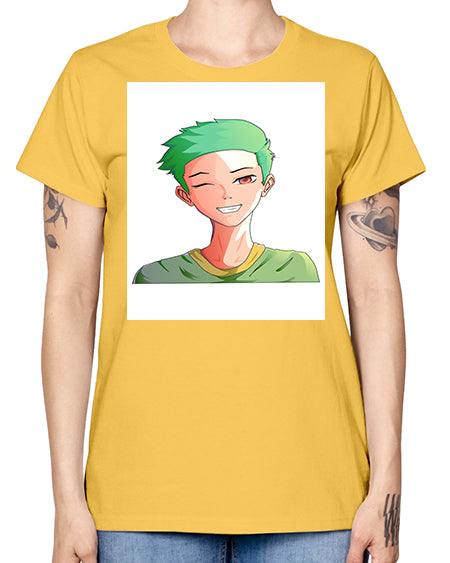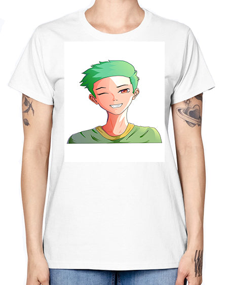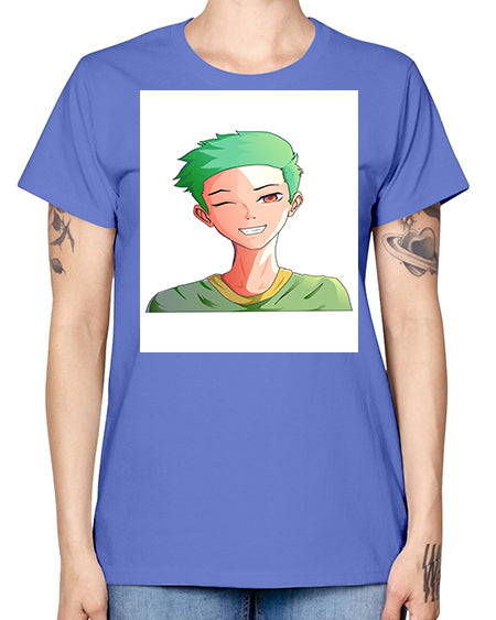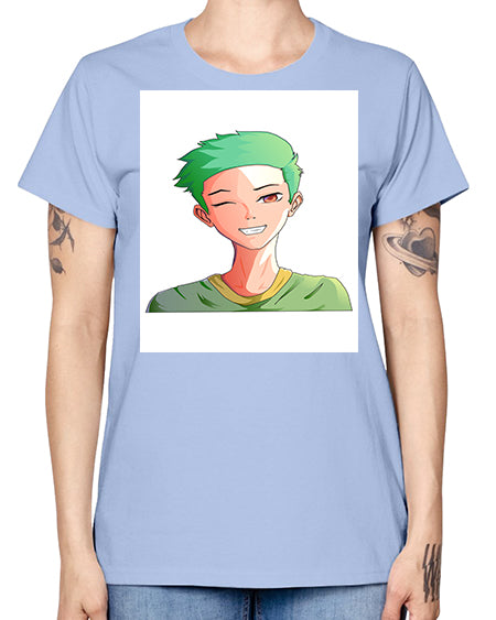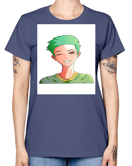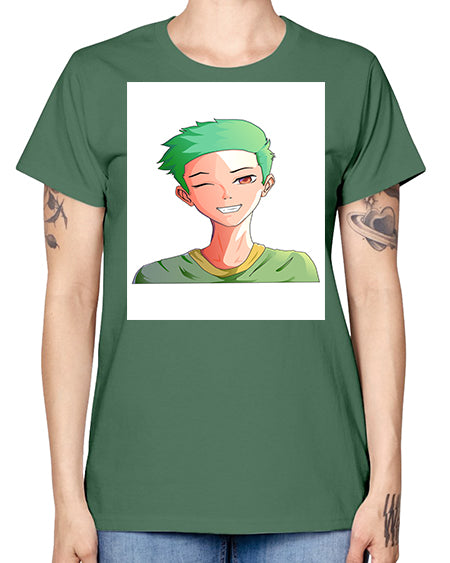 Handsome boy green hair wearing green shirt 35# - anime - Missy T-Shirt