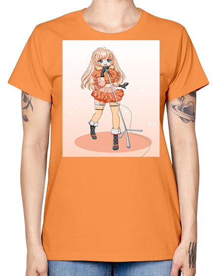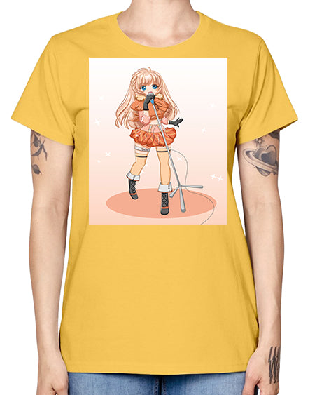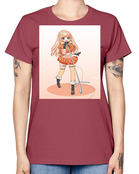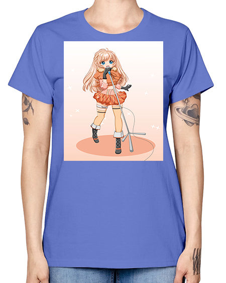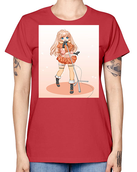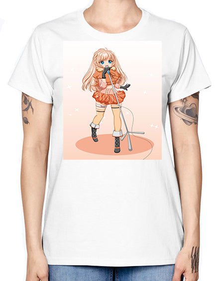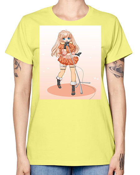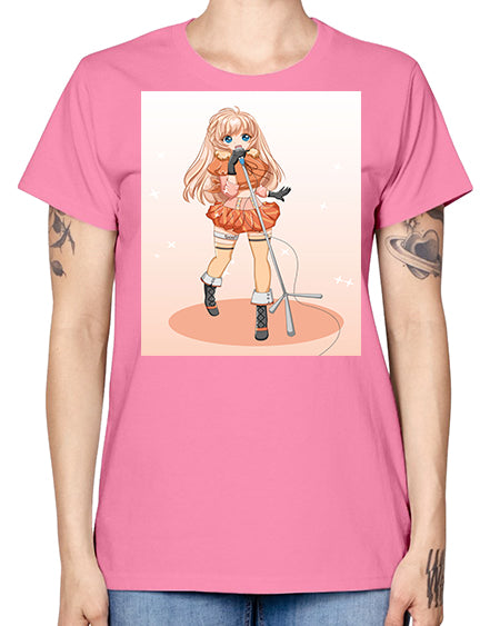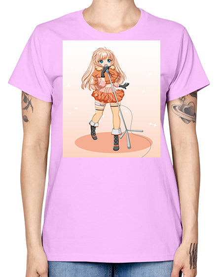Happy and beautiful singer woman with microphone 160# - anime - Missy T-Shirt