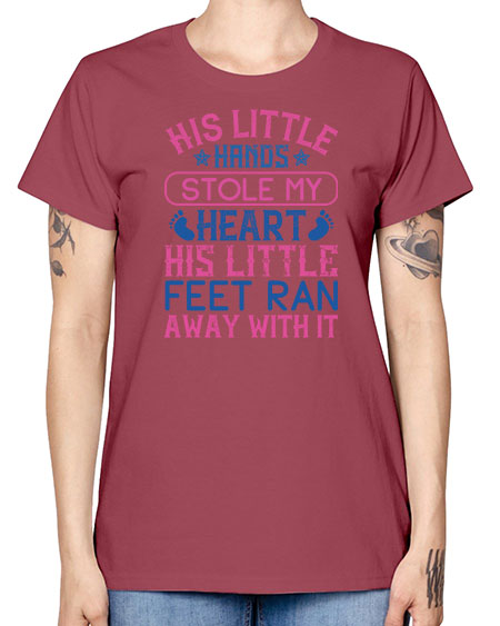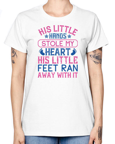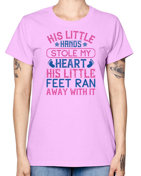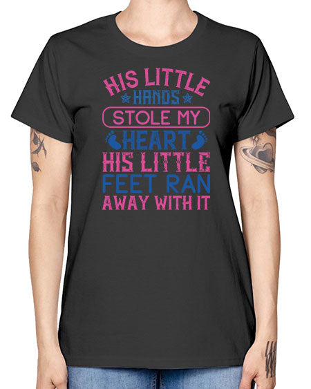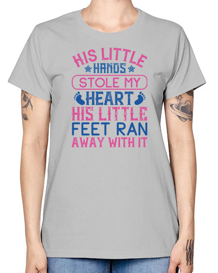 His little hands stole my heart His little feet ran away with it Style 335# - babies- Missy T-Shirt