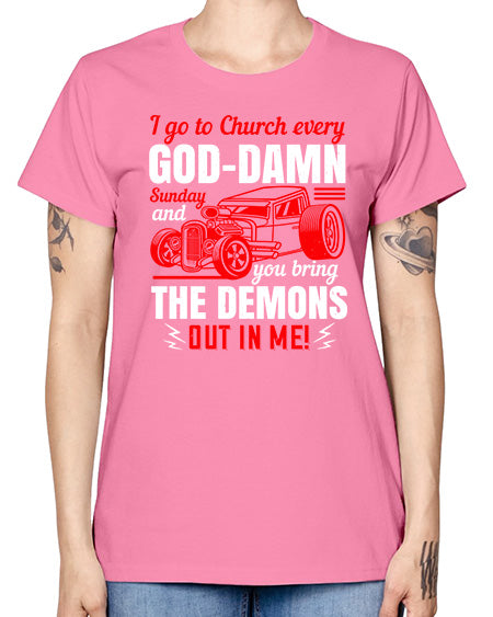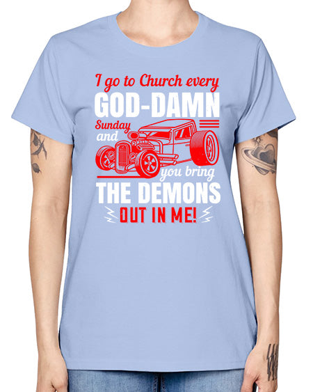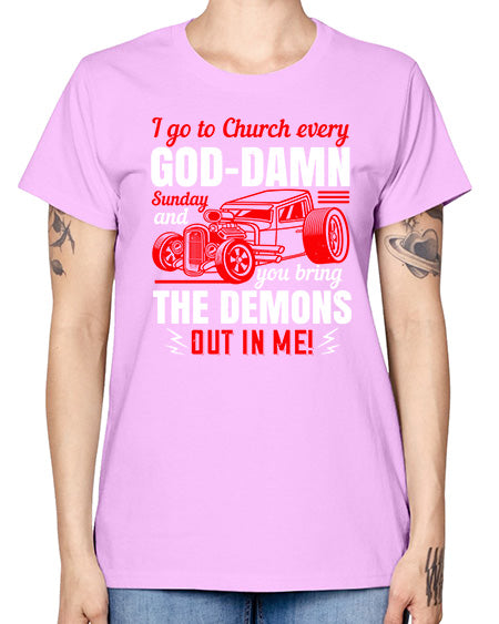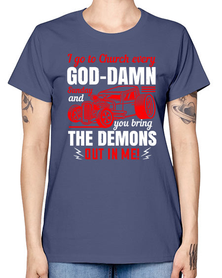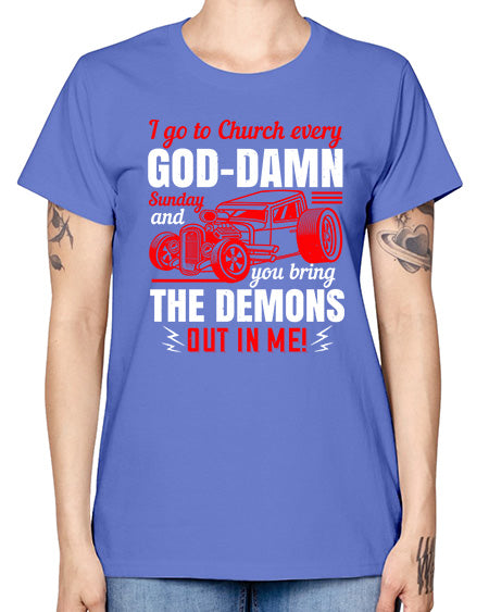 I go to Church every GodDamn Sunday and you bring the demons out in me 102# - hot rod- Missy T-Shirt
