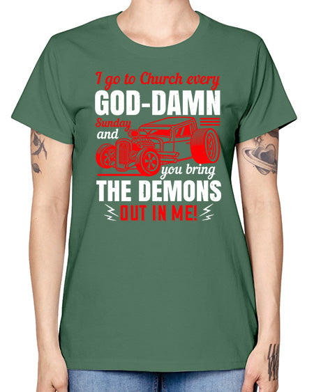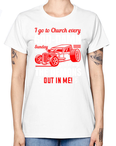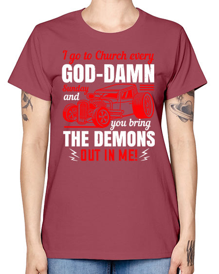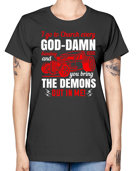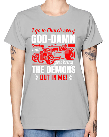 I go to Church every GodDamn Sunday and you bring the demons out in me 102# - hot rod - Missy T-Shirt